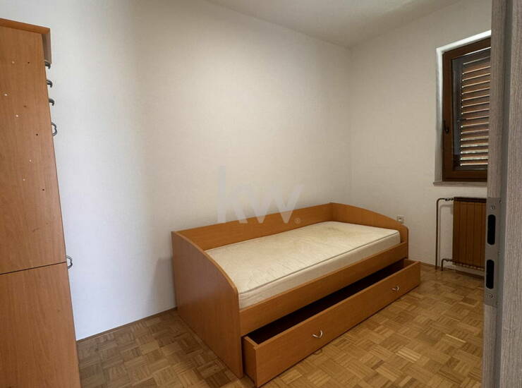 Razporeditev: 3 spalnice, svetla dnevna soba povezana s kuhinjo in jedilnico, kopalnica + ločen WC