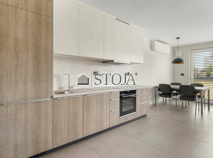 Premium stanovanje D Villa – Oddamo svetlo in moderno opremljeno 3-sobno stanovanje v Kranju.Stanovanje se nahaja v 1. Nadstropju sodobne in nizko energetske stavbe D Villa, z dvigalom.Stanovanje je funkcionalno razporejeno in obsega naslednje prostore: hodnik z garderobo, odprt dnevni prostor z velikimi panoramskimi stekli, kuhinjo z vso belo tehniko in jedilnico, spalnica, otroška soba in garderobni prostor ter kopalnica s tušem.Vsa oprema je bila narejena po meri.Stanovanju pripada shramba v izmeri 3,50 m2, 2 zunanji parkirni mesti, souporaba kolesarnice, ter zasebno otroško igrišče.Mesečni stroški so izredno nizki (cca 180 EUR/mes). Stanovanje ima talno ogrevanje na toplotno črpalko.Vila stoji v mirni soseski blizu narave. Kljub temu je vsa potrebna infrastruktura blizu: trgovina (400m), osnovna šola (400m), zdravstveni dom (500m), športni park (400m), železniška postaja (600m), 5 min vožnje do centra Kranja,…Na voljo takoj.Vabljeni na ogled! Pogoj najemodajalca za sklenitev posla: - Minimalna doba najema 12 mesecev,- Znesek varščina znaša: 3000 EUR,- Najemnik prevzame v plačilo del dodatnih storitev, tj. sestave najemne pogodbe, kar vključuje naslednja dejanja posrednika: izvedbo primopredaje nepremičnine in sestavo zapisnika, sodelovanje pri prenosu naročnin, pripravo in hrambo slikovnega gradiva, skladno s cenikom, navedenim v splošnih pogojih poslovanja nepremičninske družbe tako, da najemnik pri oglaševani najemnini in trajanju najema plača enkratni znesek za dodatne storitve 1000 EUR plus 22 % DDV, skupaj 1220 EURDDV se obračuna samo na dodatne storitve, ne pa tudi na najemnino!