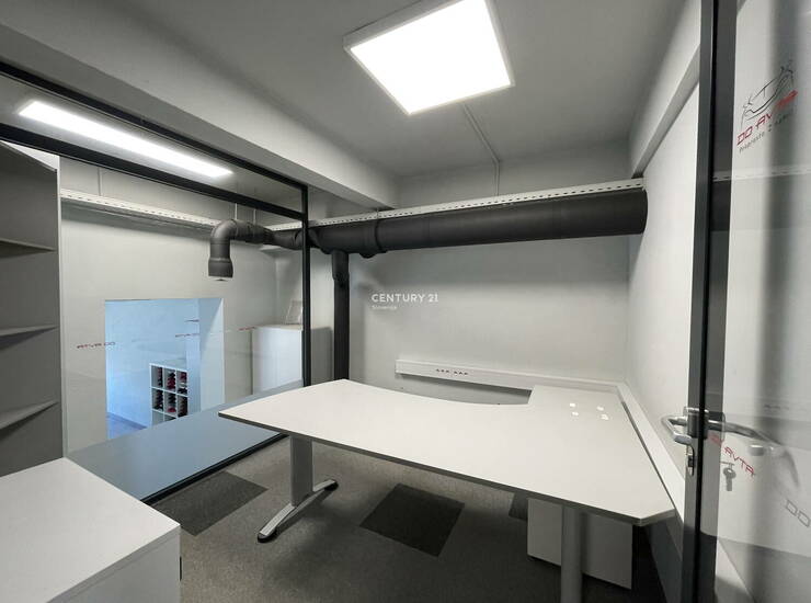 V Ljubljani – Moste oddamo urejen in svetel poslovni prostor s skupno površino 386.4 m2, z lastnim vhodom, skladiščnimi prostori in zagotovljenimi parkirnimi mesti. Prostor je primeren za različne prodajne, storitvene ali razstavne dejavnosti. Poslovni prostor v izmeri 206,8 m2 obsega velik odprt prostor, primeren za razstavni ali prodajni salon, štiri ločene pisarne, čajno kuhinjo in sanitarije za zaposlene. Prostor je opremljen s tovornim dvigalom in z notranjo dvižno ploščadjo za vozila. Posebna prednost je prostorno skladišče v izmeri 179,6 m2, ki se nahaja v kleti. Skladišče vključuje sanitarije in pralnico. Dostop je mogoč z zunanje strani (lasten vhod), dostopno pa je tudi preko tovornega dvigala. Prostor je bil doslej uporabljen kot avtomobilski salon, zato je popolnoma prilagojen tovrstni dejavnosti in omogoča takojšnje nadaljevanje poslovanja brez večjih prilagoditev. Zaradi odprte tlorisne zasnove in kakovostne infrastrukture pa je primeren tudi za številne druge dejavnosti, kot so showroomi (notranja oprema, svetila, tehnika), yoga ali pilates studio, trgovina ipd. Prostor je opremljen s klimatsko napravo, ki omogoča ogrevanje in hlajenje, ter z možnostjo dodatnega ogrevanja preko električnih radiatorjev. Poleg tega ima prostor optični priključek za hitro in zanesljivo internetno povezavo. Prostor je delno opremljen in na voljo takoj. Najemniku je na voljo več parkirnih mest. Poleg mesečne najemnine najemnik dodatno plačuje obratovalne stroške. Ob podpisu pogodbe se plača varščina v višini dveh mesečnih najemnin. Najemno razmerje se sklepa za eno leto z možnostjo podaljšanja. Prostor se nahaja na frekventni lokaciji ob železnici, v neposredni bližini avtopralnice in servisa za avtomobilska stekla, kar predstavlja dodatno prednost predvsem za dejavnosti, povezane z avtomobilsko industrijo. Lokacija omogoča hiter dostop do severne obvoznice, oddaljene le 2,8 km. Najemnik prevzame v plačilo del