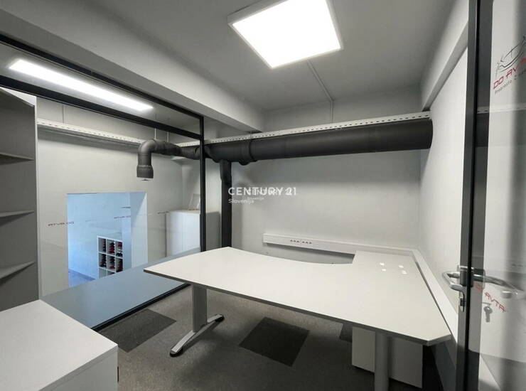 V Ljubljani - Moste oddamo urejen in svetel poslovni prostor s skupno povrsino 386.4 m2, z lastnim vhodom, skladiščnimi prostori in zagotovljenimi parkirnimi mesti. Prostor je primeren za različe prodajne, storitvene ali razstavne dejavnosti. Poslovni prostor v izmeri 206,8 m2 obsega velik odprt prostor, primeren za razstavni ali prodajni salon, štiri ločene pisarne, čajno kuhinjo in sanitarije za zaposlene. Prostor je opremljen s tovornim dvigalom in z notranjo dvižno ploščadjo za vozila. Posebna prednost je prostorno skladisce v izmeri 179,6 m2, ki se nahaja v kleti. Skladišče vključuje sanitarije in pralnico. Dostop je mogoč z zunanje strani (lasten vhod), dostopno pa je tudi preko tovornega dvigala. Prostor je bil doslej uporabljen kot avtomobilski salon, zato je popolnoma prilagojen tovrstni dejavnosti in omogoča takojšnje nadaljevanje poslovanja brez večjih prilagoditev. Zaradi odprte tlorisne zasnove in kakovostne infrastrukture pa je primeren tudi za številne druge dejavnosti, kot so showroomi (notranja oprema, svetila, tehnika), yoga ali pilates studio, trgovina ipd. Prostor je premijen s klimatsko napravo, ki omogoča ogrevanje in hlajenje, ter z možnostjo dodatnega ogrevanja preko električnih radiatorjev. Poleg tega ima prostor optični priključek za hitro in zanesljivo internetno povezavo. Prostor je delno opremljen in na voljo takoj. Najemniku je na voljo več parkirnih mest. Poleg mesečne najemnine najemnik dodatno plačuje obratovalne stroške. Ob podpisu pogodbe se plača varščina v višini dveh mesečnih najemnin. Najemno razmerje se sklepa za eno leto z možnostjo podaljšanja. Prostor se nahaja na frekventni lokaciji ob železnici, v neposredni bližini avtopralnice in servisa za avtomobilska stekla, kar predstavija dodatno prednost predvsem za dejavnosti, povezane z avtomobilsko industrijo. Lokacija omogoča hiter dostop do severne obvoznice, oddaljene le 2,8 km. Najemnik prevzame v plačilo del dod