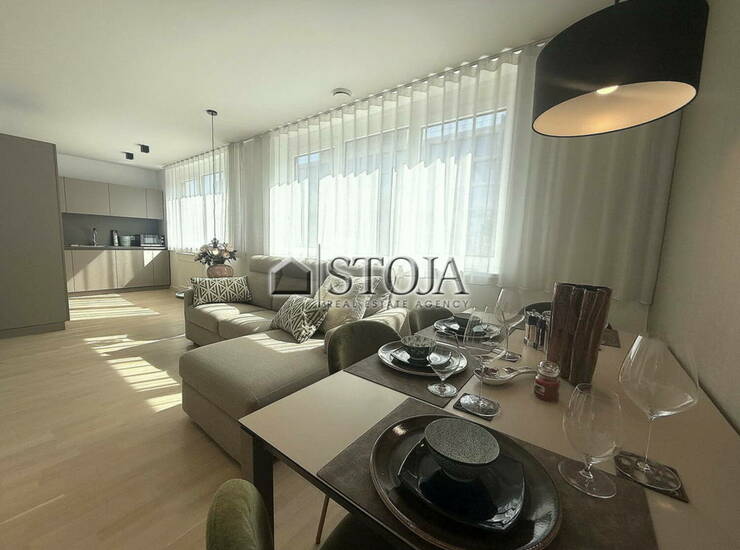Oddamo prestižno, novejše stanovanje v Rezidenci Carpe Diem – Bežigrad, LjubljanaNa odlični lokaciji za Bežigradom je na voljo izjemno, nadstandardno stanovanje v popolnoma novem, manjšem in prestižnem objektu z dvigalom ter garažo v kleti. Rezidenca Carpe Diem ni zgolj sodoben blok – ponuja vrhunski življenjski standard z dodatnimi storitvami, kot so concierge, zdravstvene in družabne aktivnosti.Opremljenost in razporeditev:Stanovanje je v celoti opremljeno z vrhunskim pohištvom in materiali.Razporeditev prostorov je premišljena in ponuja udobje ter zasebnost:Prostoren hodnikOdprta dnevna soba, povezana z jedilnico in moderno kuhinjoLočena spalnica z udobno posteljo in shranjevalnimi prostoriElegantna kopalnica s kakovostno sanitarno opremoStanovanje odlikujejo velike steklene površine, ki zagotavljajo obilico naravne svetlobe, vrhunski materiali in prijetna zasnova, ki ustvarja občutek domačnosti in razkošja hkrati.Stanovanju pripadata dve lastniški parkirni mesti v garaži pod stavbo.Celotna mestna infrastruktura – trgovine, šole, športni centri, ter sam center Ljubljane – je le korak stran.Stroški so nizki, do cca. 120 €/mesec.Primerno za: posameznika ali par, ki si želi udobno in brezskrbno življenje na elitni lokaciji.Vseljivo takoj!V ceno je že vključen 9,5% DDV. Pogoj najemodajalca za sklenitev posla: - Minimalna doba najema 25 mesecev,- Najemnik prevzame v plačilo del dodatnih storitev, tj. sestave najemne pogodbe, kar vključuje naslednja dejanja posrednika: izvedbo primopredaje nepremičnine in sestavo zapisnika, sodelovanje pri prenosu naročnin, pripravo in hrambo slikovnega gradiva, skladno s cenikom, navedenim v splošnih pogojih poslovanja nepremičninske družbe tako, da najemnik pri oglaševani najemnini in trajanju najema plača enkratni znesek za dodatne storitve 1.500 EUR plus 22 % DDV, skupaj 1.830 EURDDV se obračuna samo na dodatne storitve, ne pa tudi na najemnino!