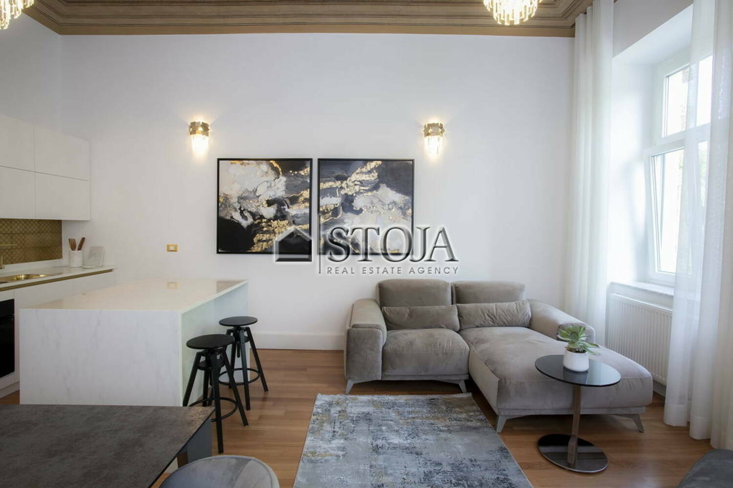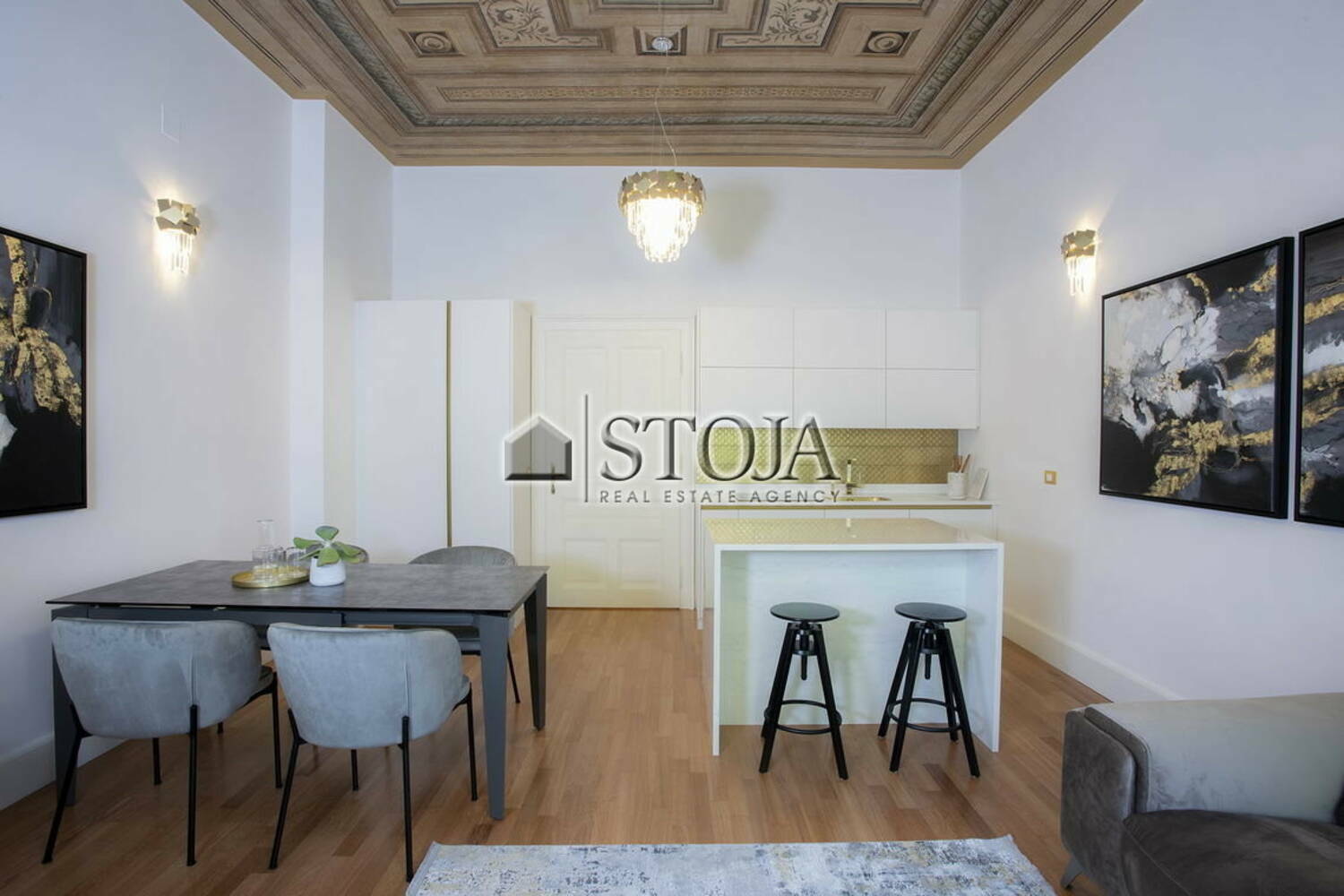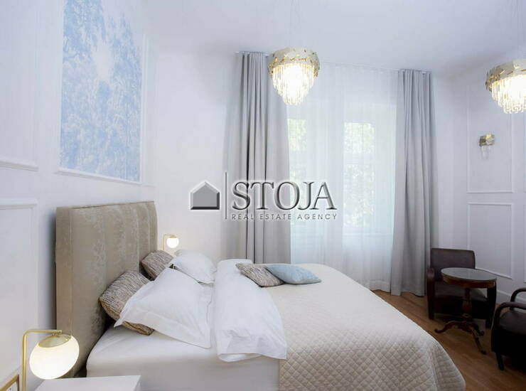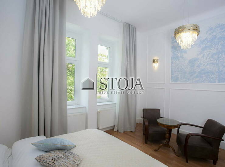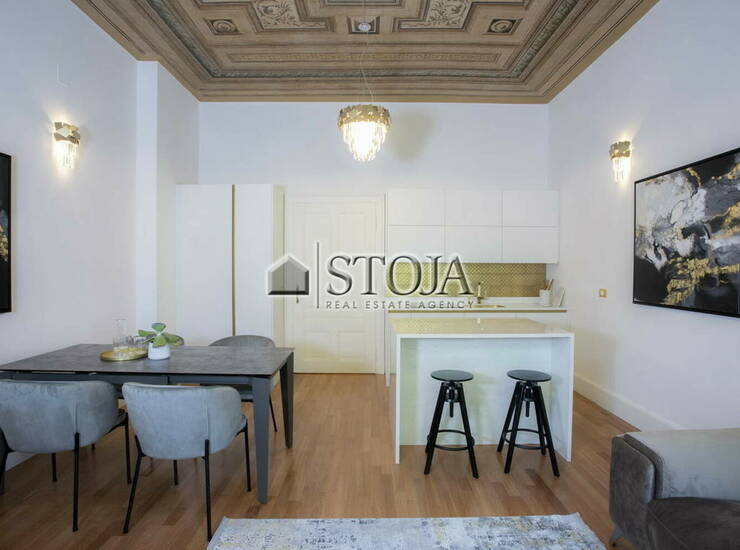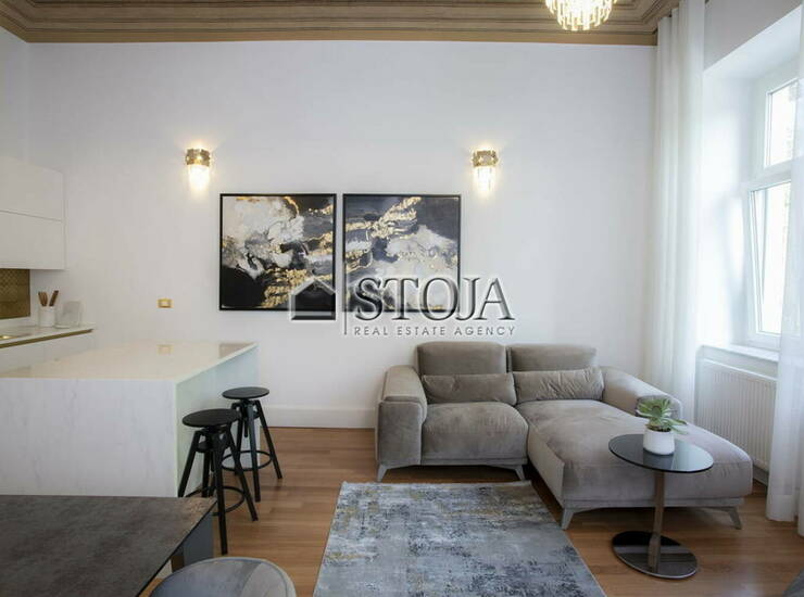 V centru Ljubljane, v neposredni bližini parlamenta, oddamo prenovljeno, popolnoma opremljeno stanovanje v 1. nad. meščanske stavbe brez dvigala.Stanovanje se ponaša s pogledom na Ljubljanski grad. Zajema predprostor s hodnikom, dnevno sobo s kuhinjo (28 m2), udobno in prostorno spalnico (23 m2), garderobno sobo, kopalnico in shrambo. Stanovanje je klimatizirano, ogrevanje je na toplovod. Stanovanje je primerno za par ali posameznika. V kleti se nahaja skupna kolesarnica.Parkiranje možno z dovolilnico ali najem parkirnega mesta v bližnji garažni hiši. Stroški v povprečju cca. 150 €.Vseiljivo takoj. Pogoj najemodajalca za sklenitev posla: - Minimalna doba najema 11,5 mesecev,- Znesek varščina znaša: 3.500 EUR,- Najemnik prevzame v plačilo del dodatnih storitev, tj. sestave najemne pogodbe, kar vključuje naslednja dejanja posrednika: izvedbo primopredaje nepremičnine in sestavo zapisnika, sodelovanje pri prenosu naročnin, pripravo in hrambo slikovnega gradiva, skladno s cenikom, navedenim v splošnih pogojih poslovanja nepremičninske družbe tako, da najemnik pri oglaševani najemnini in trajanju najema plača enkratni znesek za dodatne storitve 1.750 EUR plus 22 % DDV, skupaj 2.135 EURDDV se obračuna samo na dodatne storitve, ne pa tudi na najemnino!