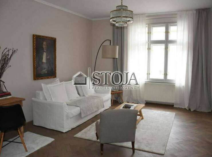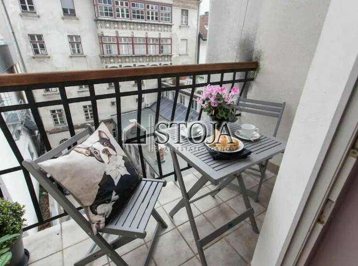 Prestižno bivališče v osrčju LjubljaneV staromeščanski stavbi tik ob Prešernovem trgu in nekaj korakov od starih mestnih ulic oddamo skrbno oblikovano 2-sobno stanovanje, namenjeno posamezniku z izbranim okusom. To prostorno stanovanje, veliko 76,6m2 predstavlja idealno izbiro za poslovneže, diplomate ali posameznike, ki cenijo diskretnost, udobje in lokacijo, ki povezuje zgodovino z današnjim utripom prestolnice.Stanovanje se nahaja v tretjem nadstropju meščanske stavbe brez dvigala in nudi svetel ter miren bivalni prostor, opremljen z umetniškimi detajli in sodobnim pohištvom. Iz zasebnega balkona se razprostira pogled na mestno ulico, hkrati pa prostor nudi popoln odmik od vrveža. Ambient je oblikovan s pozornostjo do detajlov – parketna tla, zvočna izolacija in nežna osvetlitev ustvarjajo atmosfero, primerljivo z vrhunskim hotelskim apartmajem.Spalnica, ločena od bivalnega dela, je opremljena z visoko kakovostno zakonsko posteljo, posteljnino iz naravnih materialov ter prostorno garderobno omaro. Bivalni del z udobnim kavčem je obenem zasnovan kot prostor za sprostitev ali delo – s pisalno mizo, ki omogoča nemoteno delo na daljavo.Kuhinja, ki se diskretno vključuje v prostor, je opremljena z vsemi potrebnimi aparati in jedilni kotičkom, ki ustvarja občutek domačnosti.Kopalnica je prostorna, s kadjo, ter opremljena z vso potrebno opremo. Za vse, ki iščete vrhunsko mestno izkušnjo v intimnem in premišljeno oblikovanem prostoru, je to stanovanje brez dvoma ena najlepših izbir v Ljubljani.Vseljivo s 1.novembrom 2025. Pogoj najemodajalca za sklenitev posla:- Minimalna doba najema 24 mesecev,- Znesek varščina znaša: 2.800 EUR,- Primerno za posameznika- Najemnik prevzame v plačilo del dodatnih storitev, tj. sestave najemne pogodbe, kar vključuje naslednja dejanja posrednika: izvedbo primopredaje nepremičnine in sestavo zapisnika, sodelovanje pri prenosu naročnin, pripravo in hrambo slikovnega gradiva, skladno s ce