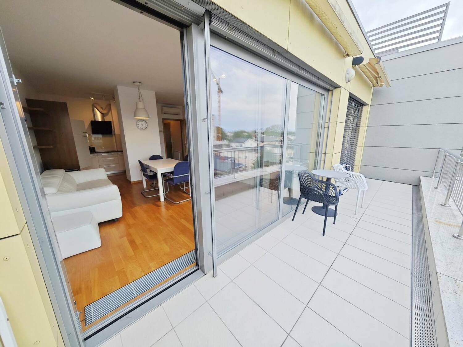 Velik balkon, ki omogoča zračno in odprto bivanje,