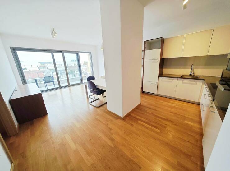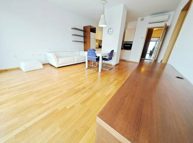 Stanovanje odlikuje svetla in prostorna dnevna soba, povezana s kuhinjo in jedilnim delom, z izhodom na prijeten balkon, kjer lahko uživate v jutranji kavi ali večerni sprostitvi. Spalnica prav tako nudi izhod na balkon, kar dodatno povečuje občutek prostornosti in povezanosti z zunanjostjo. Poleg tega ima stanovanje prostorno kopalnico in funkcionalno predsobo, ki omogoča praktično razporeditev oblačil in ostalih osebnih stvari.
