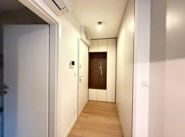 Stanovanje obsega naslednje prostore: hodnik, večji prostor, kjer je hkrati dnevna soba, jedilnica s kuhinjo v enem, kopalnica s tušem, wcjem ter pralnim strojem. ter spalnica. Stanovanju pripada tudi shramba ter parkirno lastniško mesto zunaj objekta.