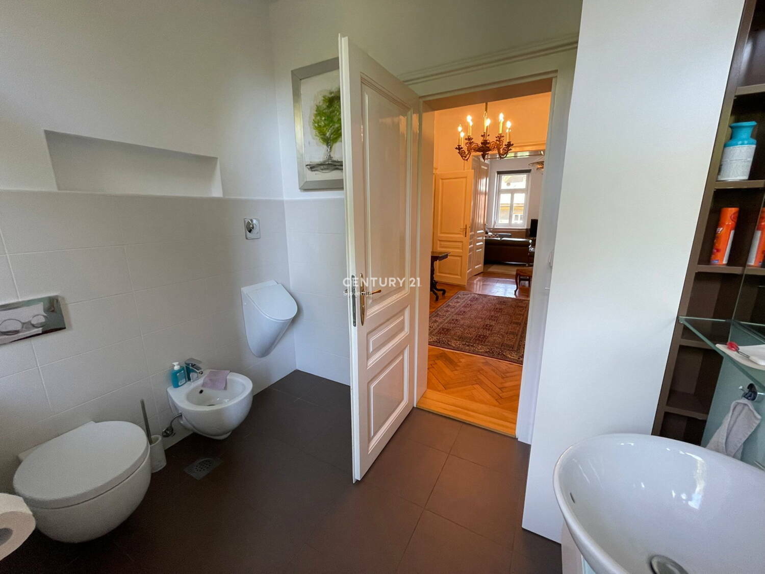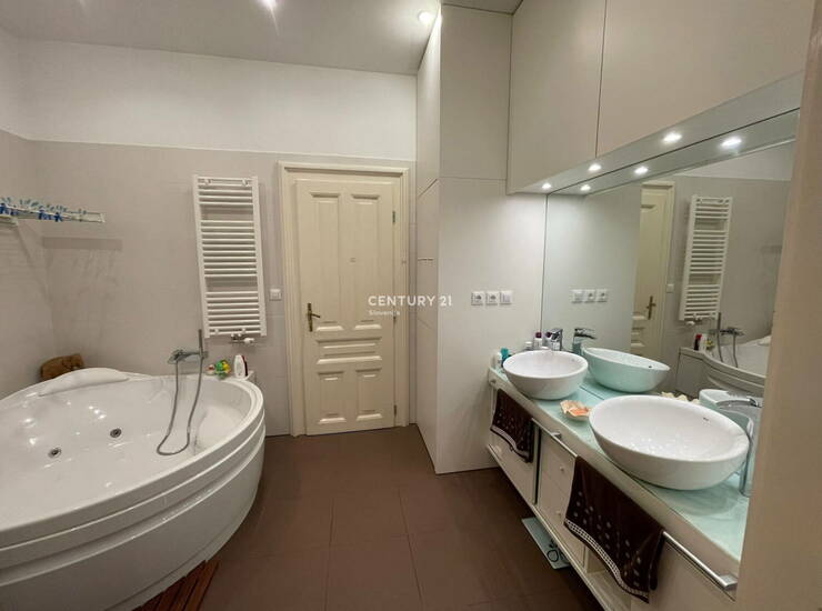 Na odlični lokaciji v centru mesta posredujemo pri oddaji zelo prostornega 3-sobnega stanovanja, ki se nahaja v 1. nadstropju urejene večstanovanjske stavbe. Stanovanje se nahaja v neposredni bližini predsedniške palače in številnih ambasad. Do parka Tivoli je le nekaj minut hoje. To prekrasno stanovanje krasi pohištvo višjega cenovnega razreda, visoki stropi (3,20 m), velika okna z obilo dnevne svetlobe, prostoren balkon, obrnjen na notranje dvorišče, s pogledom na zelenje ter krožni tloris, ki ustvarja lep pretok energije skozi prostor. Razpored prostorov: iz prostorne predsobe, kjer se nahaja tudi garderobna soba, po levi strani preidemo v prostorno dnevno sobo. Iz te dostopamo do razkošne spalnice, ki ima kar dve garderobni sobi in kopalnico z masažno kadjo. Do iste kopalnice pridemo tudi iz druge sobe, ki je trenutno delovni prostor, v osnovi pa je to dodatna soba (mladinska/otroška). Iz te pridemo v prekrasno jedilnico, ki ima dostop na balkon, ki ga krasi bujna glicinija. Kuhinja z vsemi aparati je poleg jedilnice, a ravno prav ločena. Krožni tloris nas iz jedilnice pripelje nazaj v predprostor. Na drugi strani le-tega se nahaja še toaletni prostor. Tudi iz tega lahko stopimo na balkon. Parkiranje je možno v lastniški garaži in tudi na dvorišču, ki ima zapornico, torej sta na voljo kar 2 parkirni mesti, kar je še dodatna prednost tega stanovanja. Ostalo: protivlomno varovano, videonadzorni sistem, klima, obnovljeno, zanesljiv najemodajalec. Varščina je v višini dveh najemnin. Najemnik prevzame v plačilo del dodatnih storitev, tj. sestave najemne pogodbe, kar vključuje naslednja dejanja posrednika: izvedbo primopredaje nepremičnine in sestavo zapisnika, sodelovanje pri prenosu naročnin, pripravo in hrambo slikovnega gradiva, skladno s cenikom, navedenim v splošnih pogojih poslovanja nepremičninske družbe tako, da najemnik pri oglaševani najemnini in trajanju najema plača enkratni znesek za dodatne
