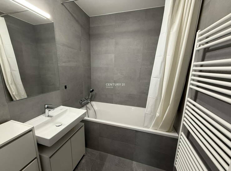 Ljubljana – Center: moderno dvosobno stanovanje z velikim atrijem in garažnim mestom Oddaja se moderno in kvalitetno opremljeno dvosobno stanovanje v urejenem in mirnem delu varnega kompleksa, le nekaj minut hoje od UKC Ljubljana in centra mesta. Stanovanje meri 47,7 m2 bivalne površine in ima prostoren, zelen atrij velikosti 24 m2, ki nudi popolno zasebnost in udobje. Lastnosti stanovanja: svetlo in moderno opremljeno popolnoma opremljena kuhinja z vsemi aparati kakovostno pohištvo in materiali klimatska naprava prostoren dnevni prostor z izhodom na atrij spalnica z veliko garderobno omaro kopalnica s pralnim strojem Dodatno: garažno parkirno mesto v podzemni garaži kompleks je ograjen, lepo urejen in varen v bližini so trgovine, LPP postaja, UKC in center mesta Okvirni mesečni stroški: poleti okoli 175 € pozimi do 225 € Najemnina: 1.350 €/mesec Najemnik prevzame v plačilo del dodatnih storitev posrednika in sestavo pogodbe, izvedbo primopredaje nepremičnine in sestavo zapisnika, pripravo in shranjevanje slikovnega gradiva, skladno s cenikom, navedenim v splošnih pogojih poslovanja nepremičninske agencije, tako da najemnik pri oglaševani najemnini in trajanju najema plača enkratno plačilo za dodatne storitve 1300 EUR plus 22% DDV. Stanovanje je primerno za posameznika ali par, ki išče udobno, moderno in mirno bivanje v središču Ljubljane.
