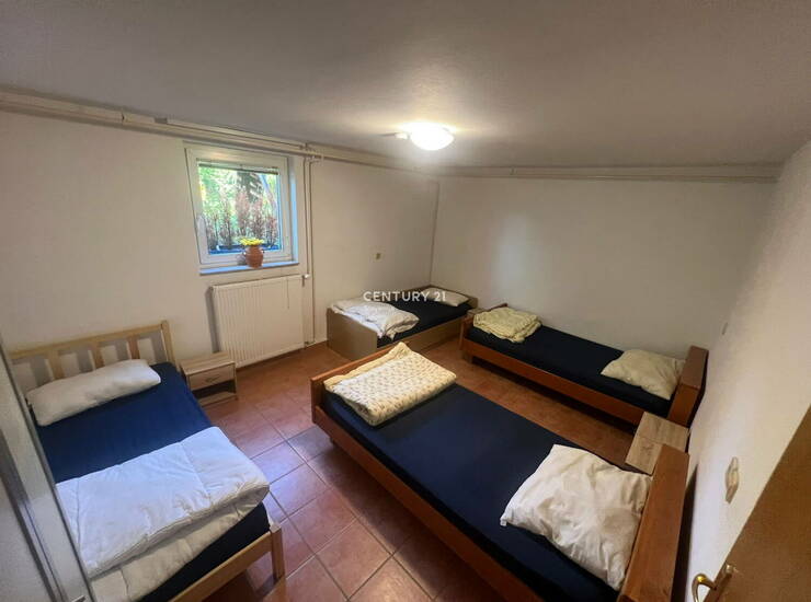 Oddamo hišo na Križu pri Komendi, primerno za nastanitev delavcev. Želja lastnika je, da se dogovori z enim podjetjem, ki rabi nastanitev za svoje delavce. Prostora je za 7 osebe ljudi. Stanovanje: Velikost: 112,53 m2 Tip: 3,5-sobno Leto gradnje: 2002 Nadstropje: PK/2 Vseljivo: 1. 9. 2025 Razporeditev in oprema: 3 postelj (primerno za 10 oseb) 2 kuhinji (v celoti opremljeni) 2 WC-ja in 2 tuša 2 TV sprejemnika Optični internet Ogrevanje: na olje, preko radiatorjev Energijski razred: D (60–105 kWh/m2a) Popolnoma opremljeno stanovanje Dodatno: 4 lastniška parkirna mesta Shramba Ločen WC Stroški: Fiksni stroški: 42 € na osebo/mesec Cena najema: Najemnik prevzame v plačilo del dodatnih storitev, tj. sestavo najemne pogodbe, kar vključuje naslednje aktivnosti posrednika: izvedbo primopredaje nepremičnine in sestavo zapisnika, pripravo in shranjevanje slikovnega gradiva, skladno s cenikom, navedenim v splošnih pogojih poslovanja nepremičninske agencije, tako da najemnik pri oglaševani najemnini in trajanju najema plača enkratno plačilo za dodatne storitve 1200EUR plus 22 % DDV. Opis: Stanovanje je prostorno, popolnoma opremljeno in pripravljeno za bivanje večje skupine. Na voljo je 10 postelj, dve kuhinji, dve kopalnici s tuši in WC-ji, optični internet ter dva TV sprejemnika. Stanovanju pripadajo štiri parkirna mesta, zato je odlična izbira za podjetja, ki iščejo nastanitev za svoje zaposlene. Več informacij na telefonu: 040 / 290 - 727 ... Pokaži številko