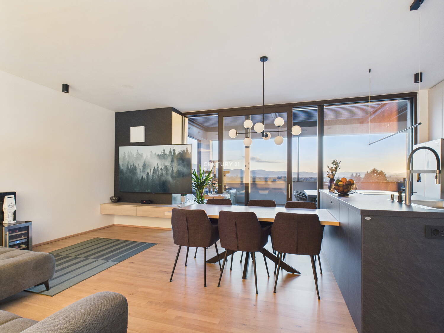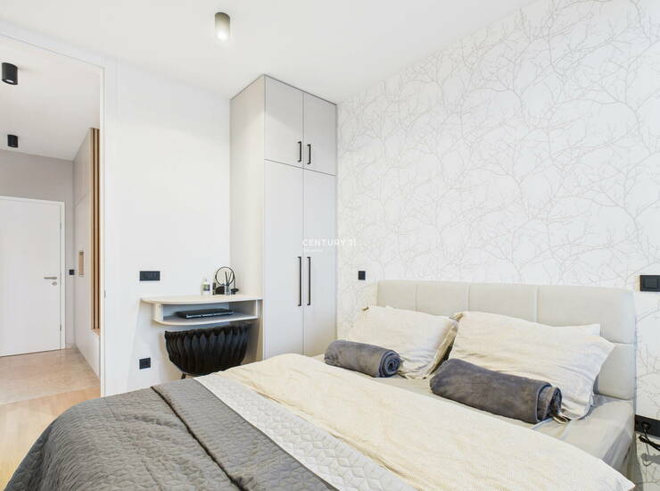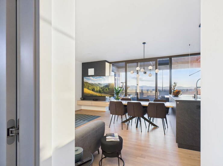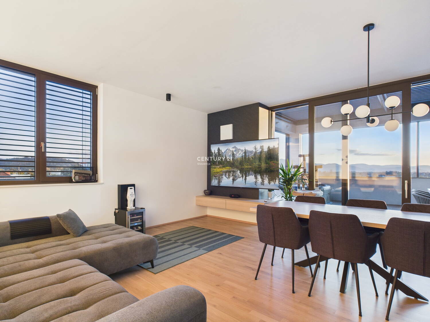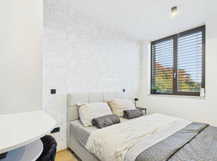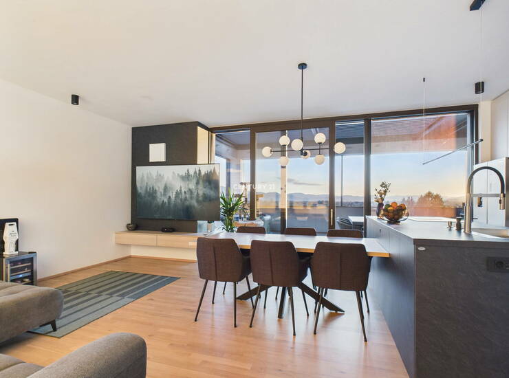Na odlični lokaciji na Rudniku, v novozgrajenem objektu sodobnega dizajna, predstavljamo prostorno nadstandardno 3-sobno stanovanje v izmeri 79,1 m2 in prostorno teraso, ki se razprostira na kar 44 m2. Popolnoma novo stanovanje se nahaja na najvišjem, 3. nadstropju objekta z dvigalom. Očaralo vas bo s svojo odlično razporeditvijo, nadstandardno opremo, z aparati višjega cenovnega razreda ter s premišljenimi detajli. Terasa, v velikosti manjšega stanovanja, ponuja praktično vse za preživljanje časa na prostem (bazen, letno kuhinjo, žar, mizo za večjo družbo, ležalnike za sproščanje, lahko tudi prostor za vadbo ali delo...). Streha terase se lahko odpre ali popolnoma zapre, prav tako vsa zunanja screen senčila in to preko aplikacije ali z daljinskim upravljanjem. Tako lahko na terasi uživate ob odprtem pogledu na Krim in okoliške hribe ali pod milim nebom uživate ob opazovanju sončega zahoda in zvezdnatega neba. Po želji pa si lahko na terasi v trenutku zastrete vse poglede in se povsem umaknete v zasebnost. RAZPORED PROSTOROV. Stanovanje s svojo razporeditvijo ponuja prostorno predsobo z veliko vgradno omaro, open space dnevno sobo z jedilnico in kuhinjo, teraso, toaleto za goste, manjšo spalnico, glavno spalnico z garderobo in večjo kopalnico. Stanovanju pripada tudi dodaten prostor za shranjevanje, kjer je spravljena tudi toplotna črpalka. Zaradi kakovostne izvedbe gradnje in sodobnih materialov ima stanovanje energetski razred B1, posledično so tudi stroški bivanja zelo ugodni. Ogrevanje poteka preko lastne toplotne črpalke (talno ogrevanje + stenski radiator v kopalnici), prezračevanje je naravno in preko rekuperacije. Stanovanje je popolnoma opremljeno in pripravljeno na takojšnjo vselitev in lagodno bivanje. Zaradi svoje lege omogoča popolno zasebnost. Mikrolokacija: novozgrajeni objekt se nahaja na Rudniku, v bližini vse potrebne infrastrukture (trgovine, nakupovalni center Supernova Rudnik, šola, vrtec,