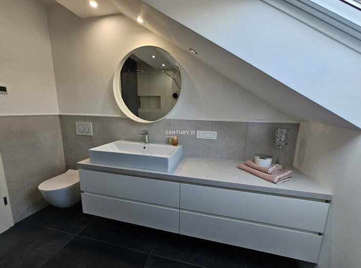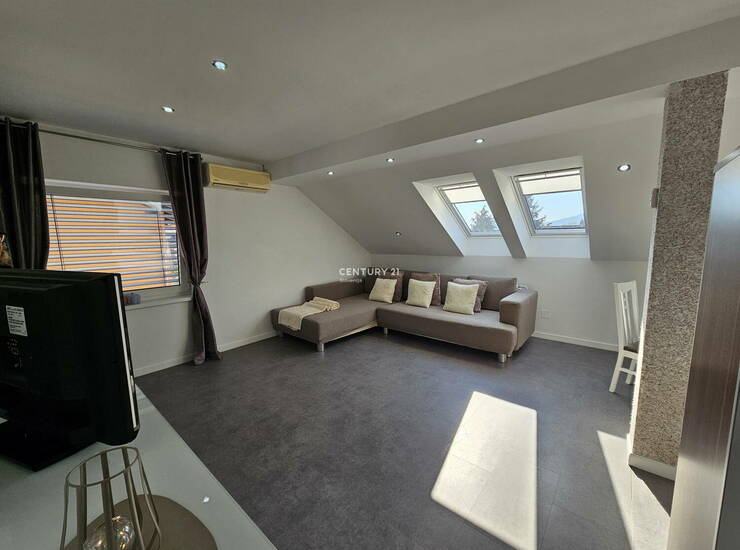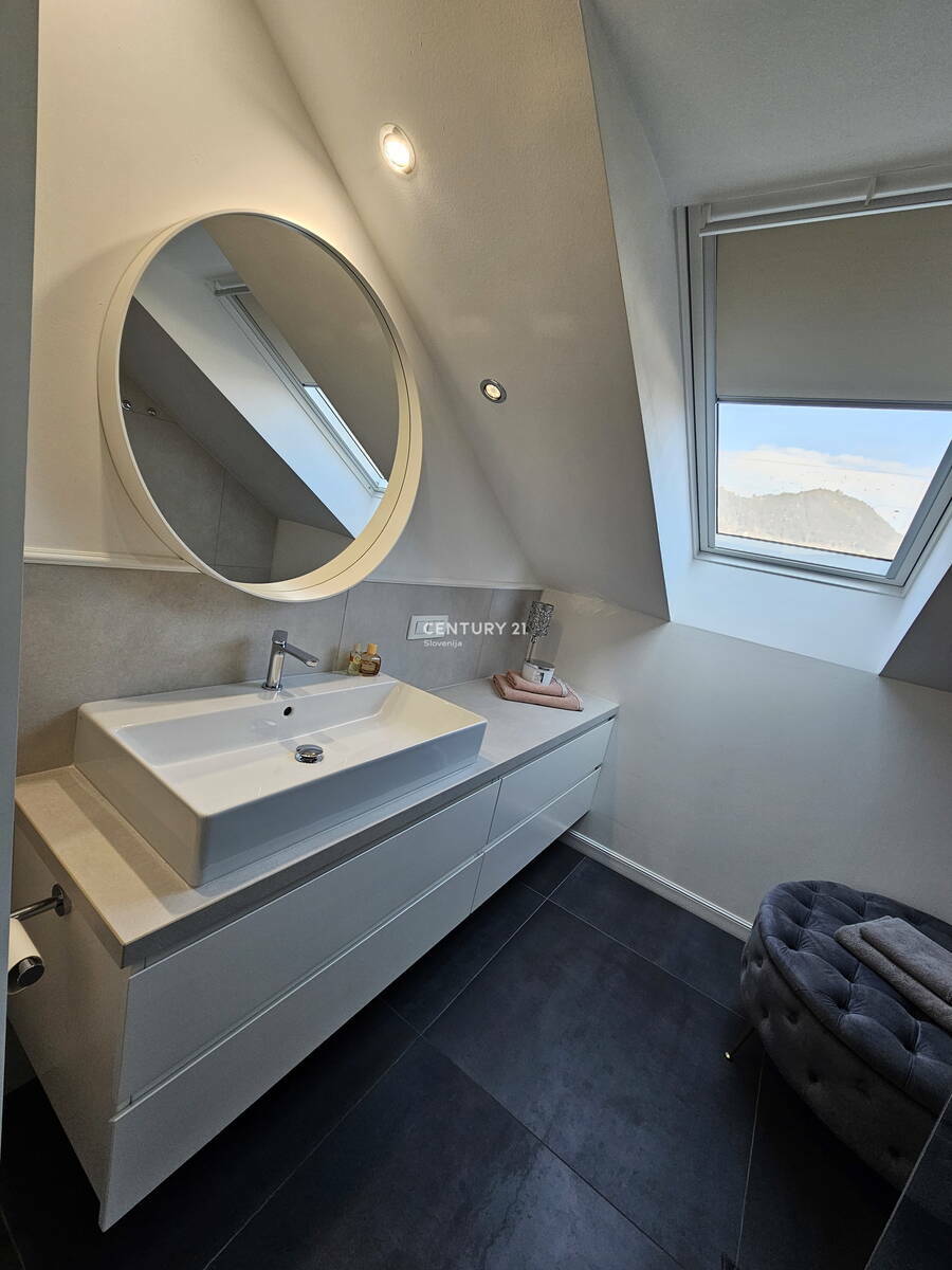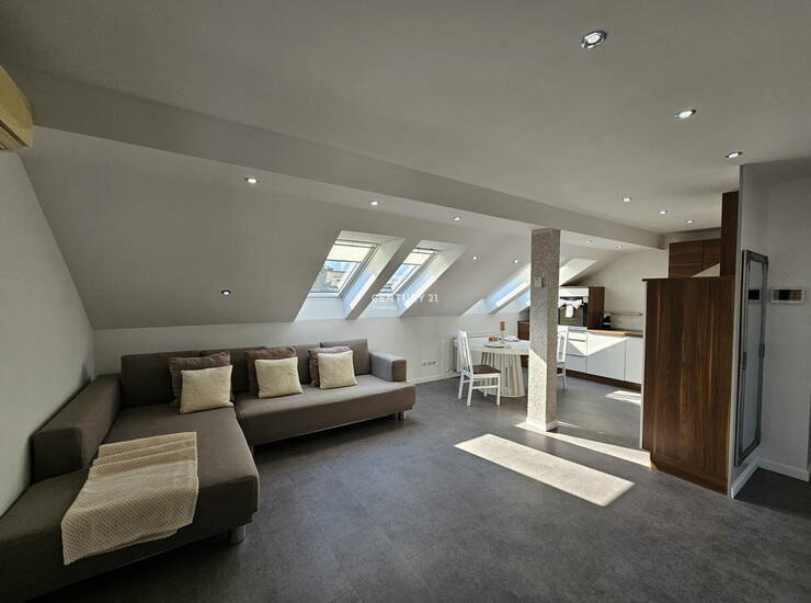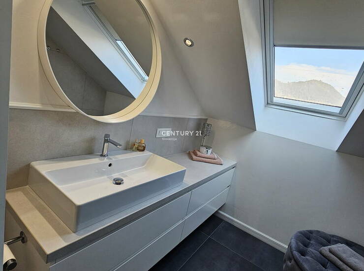 Luksuzno 2-sobno stanovanje, Ljubljana - Šentvid (naselje pod Šmarno goro) Iščete elegantno, moderno in popolnoma opremljeno stanovanje v mirnem delu Ljubljane z odlično povezavo do narave? To prostorno 2-sobno stanovanje (56 m2) v Šentvidu združuje udobje, dizajn in kakovostno obnovo, hkrati pa ponuja vse prednosti mirne soseske pod Šmarno goro. Razporeditev prostorov: Velika in svetla dnevna soba z več strešnimi okni Moderna kuhinja z jedilnico (vsa bela tehnika) Spalnica, ki bo naknadno opremljena s posteljo in nočno omarico glede na potrebe najemojemalca Luksuzna kopalnica z veliko prho (walk-in) in skupna pralnica pralnim in sušilnim strojem Opremljenost in udobje: Popolnoma adaptirano leta 2022 Moderna oprema in pohištvo Lastniško parkirno mesto Ogrevanje: talno gretje, toplotna črpalka, 3 radiatorji Klima Veliko naravne svetlobe (več strešnih oken) Optični internet Led razsvetljava, kakovostni materiali Pralnica s profesionalnimi aparati Lokacija - Šentvid (pod Šmarno goro) Mirno in urejeno naselje Hitra povezava do AC obroča 10 min do centra mesta V bližini: trgovina, LPP, vrtec, šola, športna igrišča, narava, rekreacijske površine, restavracij Odlično za par ali posameznika, ki ceni kvaliteto bivanja Najemni pogoji: Najemnina: 950 €/mesec + stroški Stroški: cca. 120 €/mesec Varščina: 2 mesečni najemnini Najem: 11 mesecev z možnostjo podaljšanja Vseljivo: takoj Najemnik prevzame v plačilo del dodatnih storitev, tj. sestavo najemne pogodbe, kar vključuje naslednje aktivnosti posrednika: izvedbo primopredaje nepremičnine in sestavo zapisnika, pripravo in shranjevanje slikovnega gradiva, skladno s cenikom, navedenim v splošnih pogojih poslovanja nepremičninske agencije, tako da najemnik pri oglaševani najemnini in trajanju najema plača enkratno plačilo za dodatne storitve 950 EUR plus 22 % DDV.