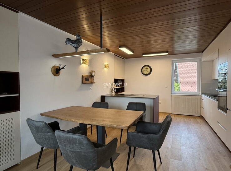 Na izjemno mirni lokaciji v Trnovem oddamo prostorno in popolnoma prenovljeno stanovanje v večstanovanjski hiši s tremi enotami. Stanovanje meri 124 m2 in je zasnovano premišljeno ter s poudarkom na udobju in kvaliteti bivanja. Obsega moderno kuhinjo z jedilnim delom in izhodom na balkon, veliko dnevno sobo, glavno kopalnico, dodatno sobo, ki se lahko uporablja kot spalnica ali domača pisarna, z lastno kopalnico, ter spalnico v zgornji etaži, kjer se nahaja tudi manjši kabinet in predsoba. Stanovanje je izredno svetlo in zračno, v celoti prenovljeno leta 2025. Opremljeno je s pohištvom izdelanim po meri, z luksuznimi materiali in visokokakovostno opremo (vključno s pralnim, sušilnim in pomivalnim strojem). Nahaja se v urejenem in mirnem predelu, le nekaj minut hoje od mestnega središča. V bližini so vse pomembne storitve – šola, vrtec, pošta, trgovina in postajališče LPP. Stanovanju pripada eno lastniško parkirno mesto pred hišo. Oddaja se popolnoma opremljeno in je vseljivo takoj. Najemnik prevzame v plačilo del dodatnih storitev posrednika in sestavo pogodbe, izvedbo primopredaje nepremičnine in sestavo zapisnika, pripravo in shranjevanje slikovnega gradiva, skladno s cenikom, navedenim v splošnih pogojih poslovanja nepremičninske agencije, tako da najemnik pri oglaševani najemnini in trajanju najema plača enkratno plačilo za dodatne storitve 1950 EUR. Želimo si mirne in urejene dolgoročne najemnike. Kajenje in hišni ljubljenčki niso dovoljeni.