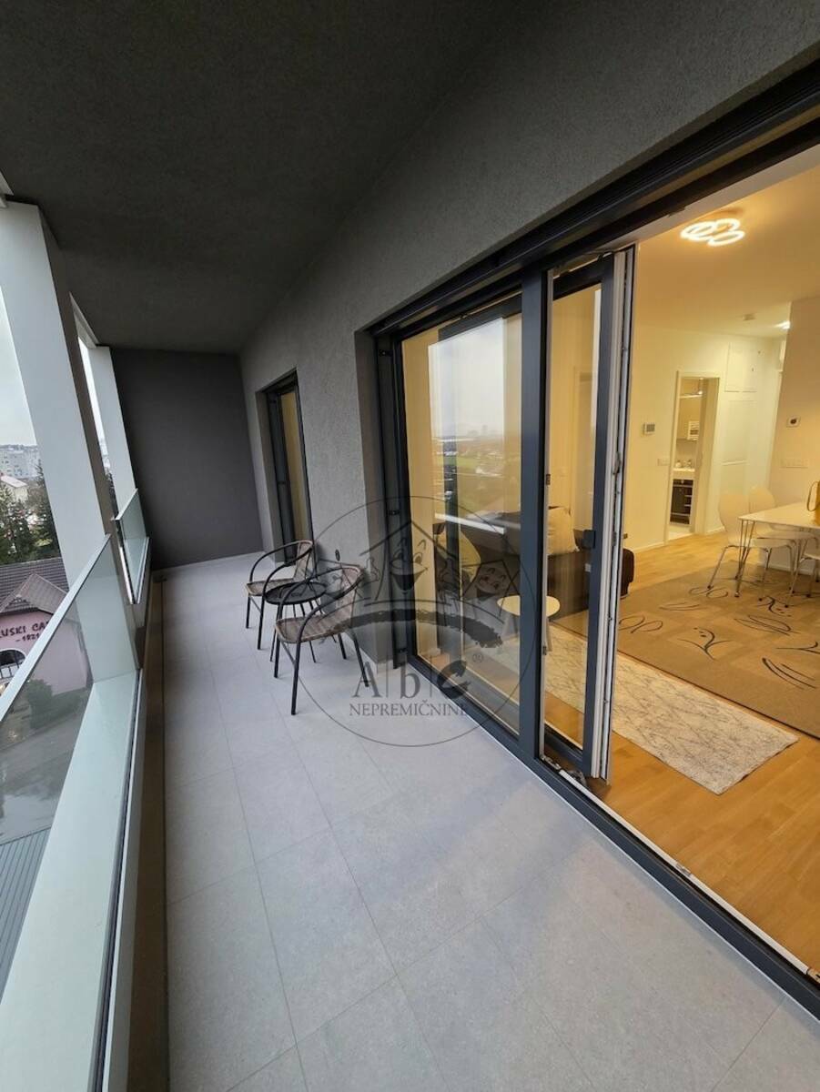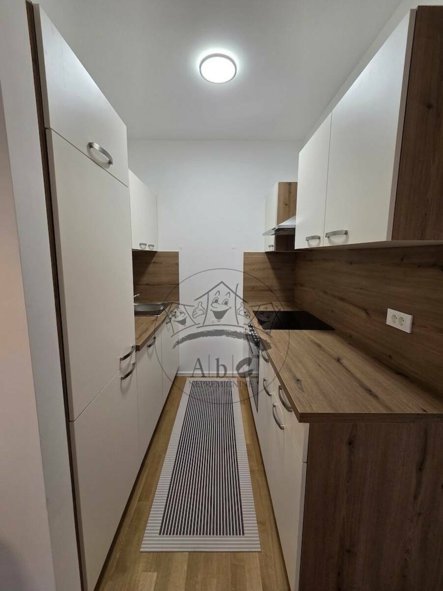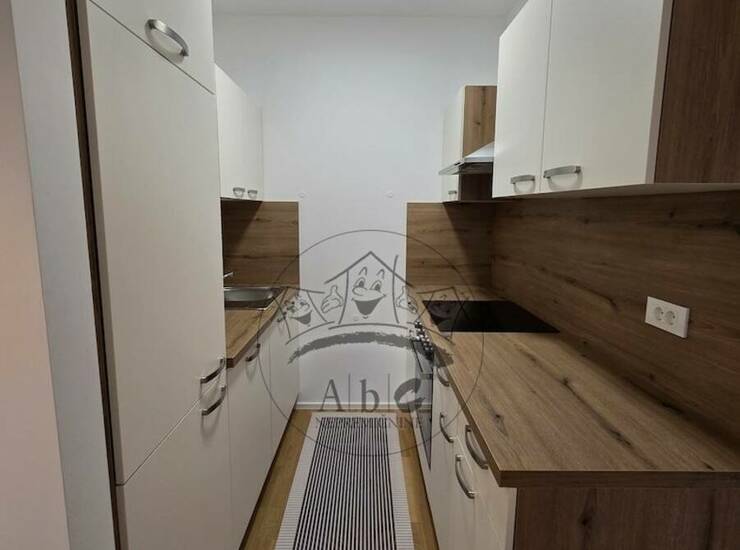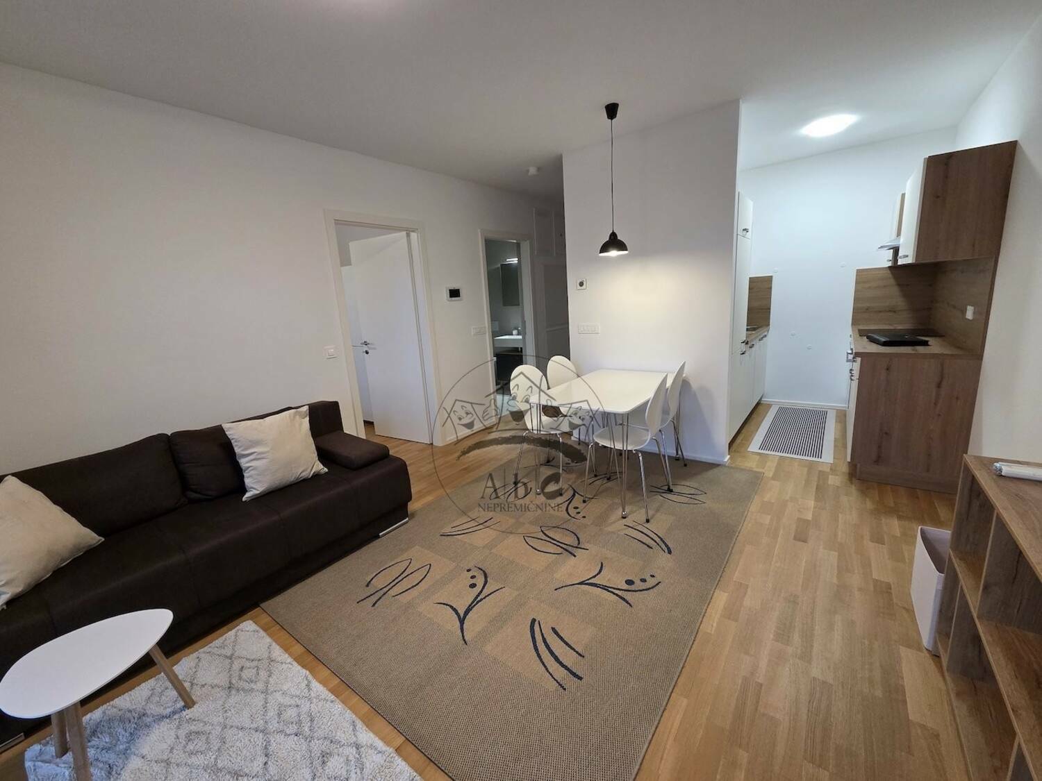 V 6. nadstropju na novo zgrajenega objekta z dvigalom oddamo manjše moderno dvosobno stanovanje z veliko ložo, pripadajočo shrambo in parkirnim mestom v garaži pod objektom.