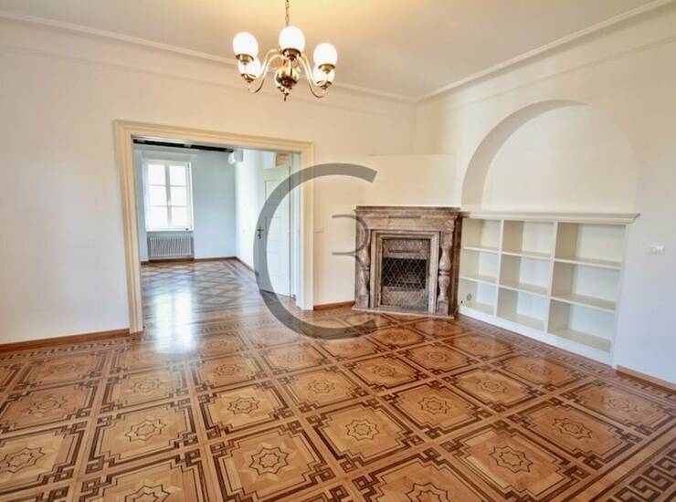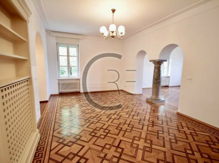 Oddamo luksuzno stanovanje v staromeščanski vili na Mirju. Stanovanje ima stilske parkete iz leta 1936 ter umetniška dela kot so fontana, reliefi, stebri, delujoči kamin iz marmorja itd. in je primerno za reprezentnčne dogodke. Oddaja se delno opremljeno kot razvidno iz slik. Sestoji iz predsobe/sprejemice, dnevne sobe, knjižnice, velike jedilnice s fontano, treh spalnic, dveh kopalnic, kuhinje, tehničnega prostora ter 40m2 velike terase in kletne shrambe v izmeri 30m2. Stanovanje je klimatizarno in varovano z alarmno napravo. Ogrevanje preko etažne peči. Eno parkirno mesto v garaži objekta. Možnost parkiranja dodatnih vozil. Vsa infratsruktura v neposredni bližini, prav tako staro mestno jedro. Varščina v višini dveh mesečnih najemnin. Na voljo takoj!