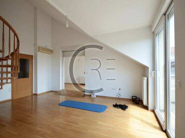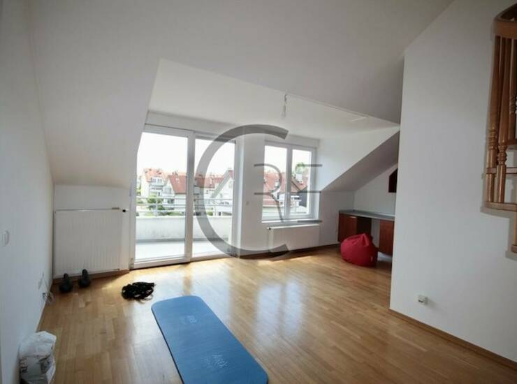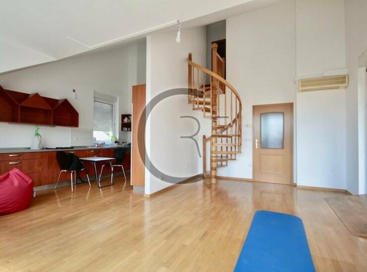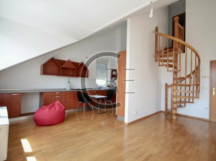 Oddamo prostorno, svetlo, razgibano stanovanje v soseski Nova Grbina. Stanovanje ima 133,80 m2 bivalne površine in v prvem delu (mansarda) obsega predsobo, bivalni prostor z opremljeno kuhinjo (pomivalni stroj, pečica, steklokeramična kuhalna plošča, hladilnik), 3 balkoni (skupaj 42 m2), 2 kopalnici (tuš), 2 spalnice, shrambo. Drugi del (podstreha) obsega eno veliko spalnico s kopalnico in delovni kotiček.