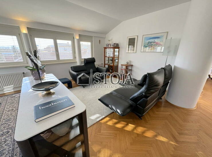 Oddaja Prestižnega Penthouse Stanovanja v Centru.Predstavljamo edinstveno priložnost za najem čudovitega Penthouse stanovanja, ki se nahaja v samem srcu mesta v urejeni vili.Lokacija: Penthouse se nahaja v centralni lokaciji, ki vam omogoča enostaven dostop do vseh mestnih udobjij, od restavracij in trgovin do kulturnih dogodkov.Značilnosti:Velika predsoba, ki se odpre na očarljivo teraso, idealno za druženje in uživanje ob sončnem zahodu.Ločena kuhinja, opremljena z najnovejšimi napravami.Prostorna jedilnica, ki je povezana z udobno dnevno sobo, ustvarja prostor za druženje in sprostitev.Dve spalnici, ki nudita zasebnost in udobje, ter ena garderobna soba za organizacijo vaših oblačil.Dve kopalnici, ter ločeno stranišče za goste, kar ponuja funkcionalnost.Možnost prilagoditve na 4 spalnice, kar omogoča prilagodljivost glede na vaše potrebe.Druge značilnosti:Klimatizacijski sistem za zagotavljanje udobne temperature v vseh letnih časih.Protivlomna vrata in alarmna naprava za dodatno varnost vašega doma.Eleganten dizajn in kakovostni materiali.Pogled na mestno okolje in bližnjo infrastrukturo.Dvigalo za udobno premikanje po stavbi.Shramba za dodaten prostor za shranjevanje vaših osebnih stvari.Dve parkirni mesti v kleti objekta, kar vam zagotavlja varno in zasebno parkiranje.Oprema in vselitev po dogovoru.Ne zamudite te izjemne priložnosti za nakup prestižnega stanovanja, ki združuje udobje, funkcionalnost in eleganco. Pogoj najemodajalca za sklenitev posla:- Minimalna doba najema 25 mesecev,- Znesek varščina znaša enako 2 mesečni najemnini,- Najemnik prevzame v plačilo del dodatnih storitev, tj. sestave najemne pogodbe, kar vključuje naslednja dejanja posrednika: izvedbo primopredaje nepremičnine in sestavo zapisnika, sodelovanje pri prepisu naročnin, pripravo in hrambo slikovnega gradiva, skladno s cenikom, navedenim v splošnih pogojih poslovanja nepremičninske družbe tako, da najemnik pri oglaševani na