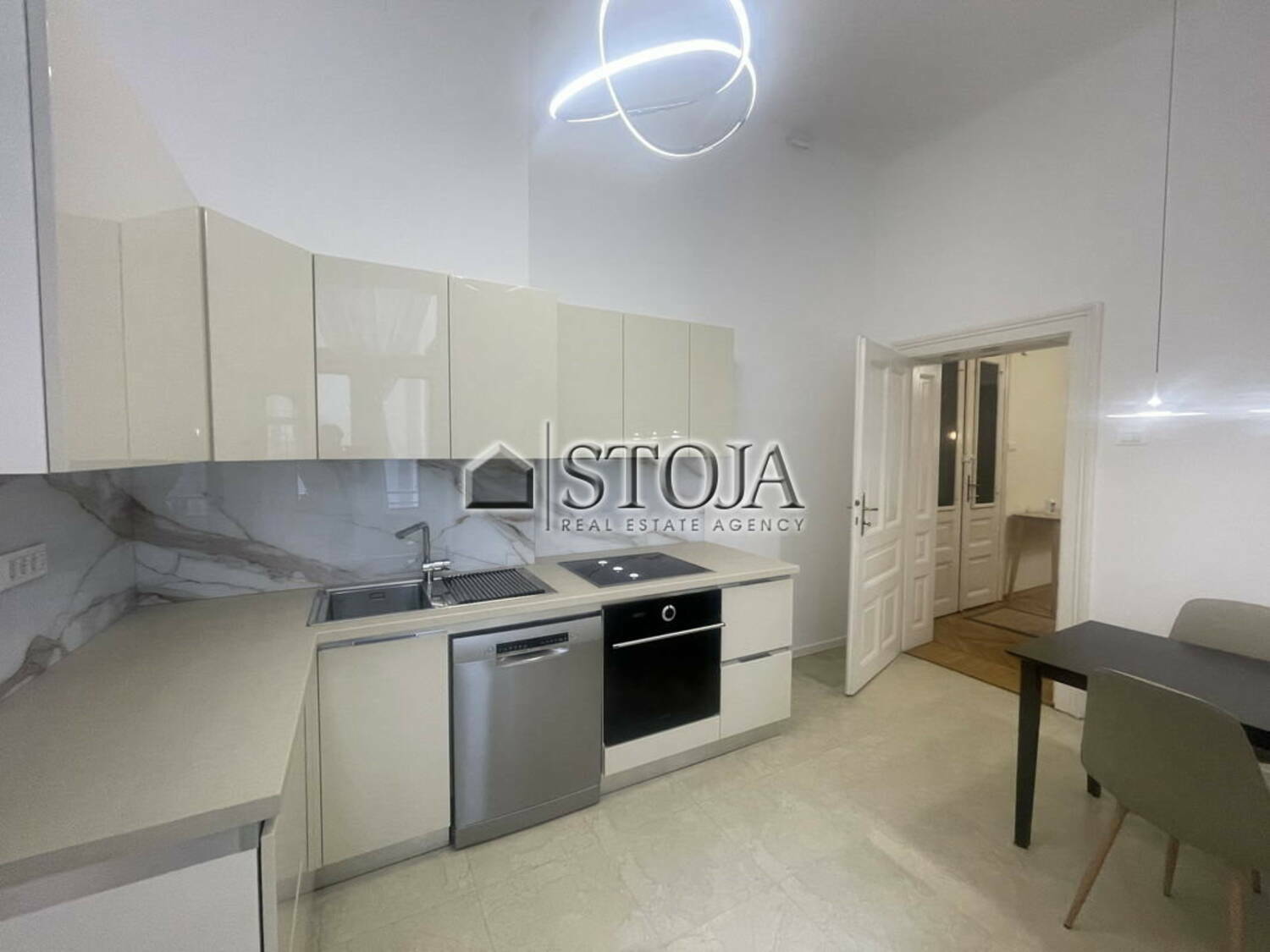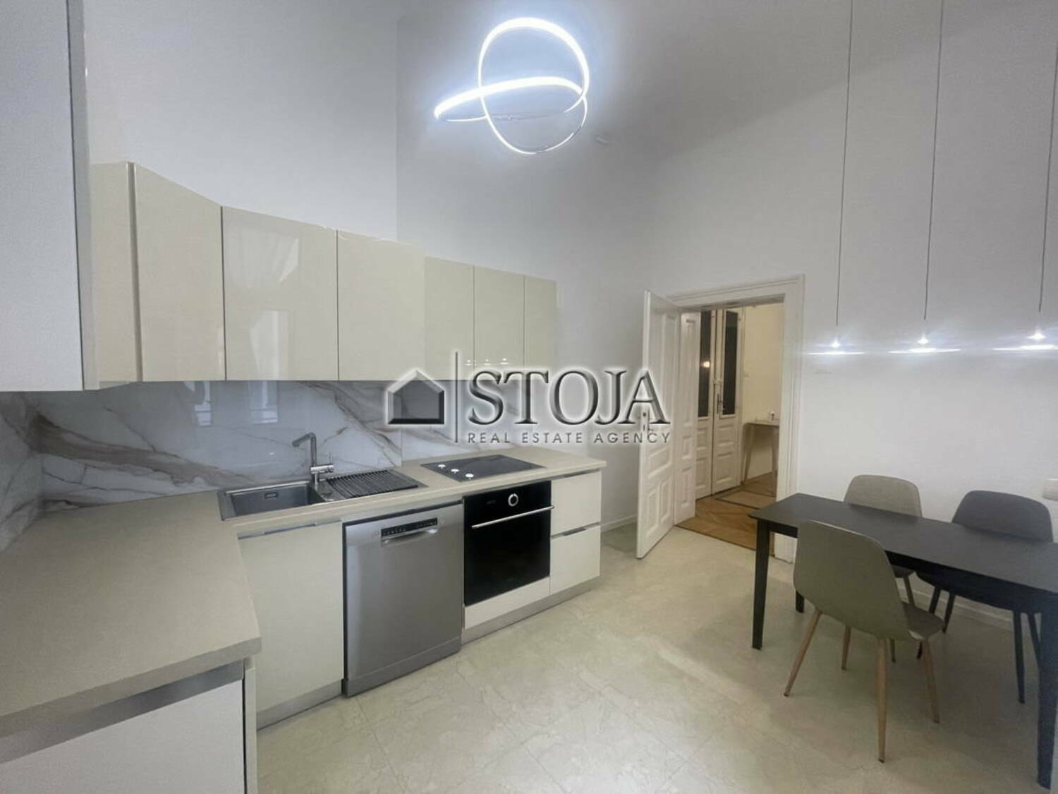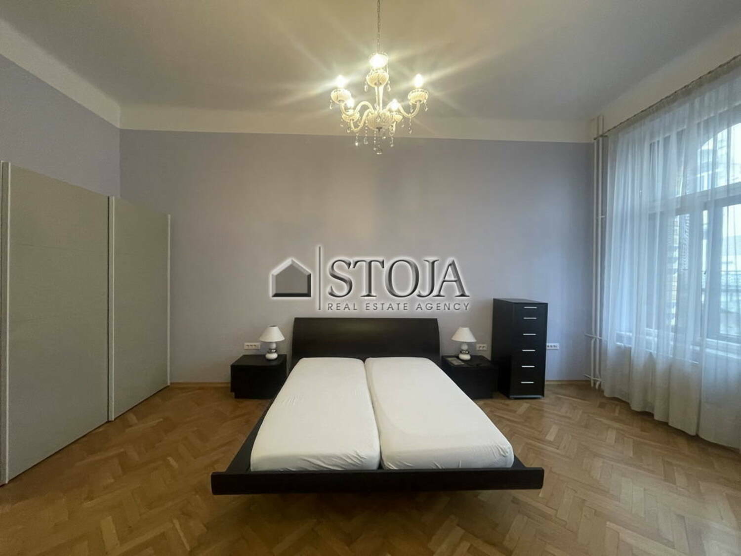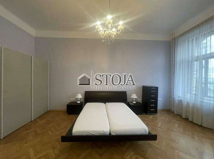 Oddamo čudovito meščansko stanovanje v bližini Prešernovega trga. Stanovanje ima 115, 4 m2 uporabne površine, balkon 5,7 m2. Stanovanje obsega naslednje prostore: predsoba, kuhinja z jedilnico in izhodom na balkon, 2 spalnici, kopalnica. V kuhinji vsi aparati v kopalnici pralni stroj in tuš. Stanovanje je kompletno in moderno opremljeno. Vseljivo takoj. - Najemnik prevzame v plačilo del dodatnih storitev, tj. sestave najemne pogodbe, kar vključuje naslednja dejanja posrednika: izvedbo primopredaje nepremičnine in sestavo zapisnika, sodelovanje pri prenosu naročnin, pripravo in hrambo slikovnega gradiva, skladno s cenikom, navedenim v splošnih pogojih poslovanja nepremičninske družbe tako, da najemnik pri oglaševani najemnini in trajanju 25 mesecev najema plača enkratni znesek za dodatne storitve 1800 EUR plus 22 % DDV, skupaj 2196 EURDDV se obračuna samo na dodatne storitve, ne pa tudi na najemnino!