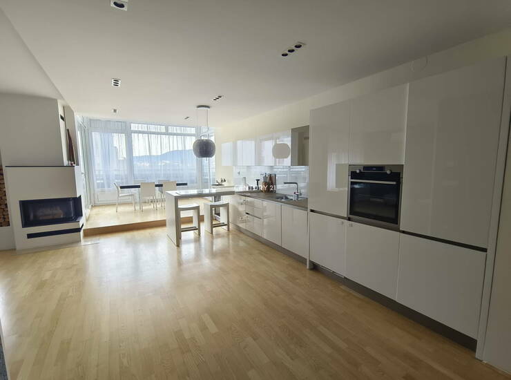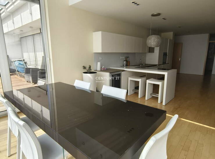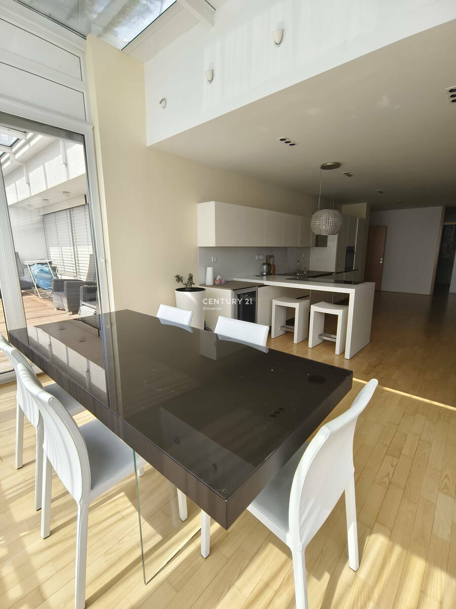 Oddamo popolnoma opremljen Penthouse na izjemni lokaciji v Mariboru, natančneje na območju Koroških vrat. Prostorno 4-sobno stanovanje na strehi objekta Koroški Veter v skupni izmeri 195,9 m2. Stanovanje se nahaja v sodobni stavbi, zgrajeni leta 2007, in je umeščeno v vrhnje, šesto nadstropje šestnadstropne stavbe, kar zagotavlja posebno zasebnost ter odličen pogled. Stanovanje izstopa zaradi izjemne velikosti in premišljene razporeditve, ki vključuje tri spalnice in ločen WC. Poleg prostorne notranjosti je na voljo tudi terasa velikosti 39,7 m2 ter klet v izmeri 3,1 m2. Orientacija stanovanja proti jugu in severu omogoča obilico naravne svetlobe čez cel dan, kar daje občutek zračnosti in topline. Stanovanje je opremljeno s kuhinjo z aparati, pomivalnim strojem, pralnim strojem, kopalno kadjo, posteljo ter pisalno mizo. Med dodatnimi prednostmi stanovanja velja izpostaviti dostopnost za invalide, protivlomna vrata ter optični priključek za sodobno digitalno povezljivost. Ogrevanje je urejeno na plin s centralno kurjavo, za dodatno udobje pa poskrbi klimatska naprava. Stanovanje je zelo sončno, nahaja se na mirni lokaciji v bližini narave in nudi lep razgled. V stavbi sta na voljo dvigalo ter garaža in pokrito parkirišče. Lokacija Koroška vrata omogoča hitro dostopnost do osrednjih mestnih točk in ključne infrastrukture, hkrati pa nudi umik v mirno okolje z bližino narave, kar je redkost v urbanem okolju. Stanovanje je primerno za večje ali manjše družine, starejši par, poslovneže, konzulata oziroma diplomate ali mlajši par, ki išče kakovostno in udobno bivanje na odlični lokaciji. Za več informacij ali ogled stanovanja ste vabljeni, da nas kontaktirate. Pogoj najemodajalca je, da plača najemojemalec ob sklenitvi najemne pogodbe varščino v višini dveh mesečnih najemnin. Na voljo za vselitev takoj!
