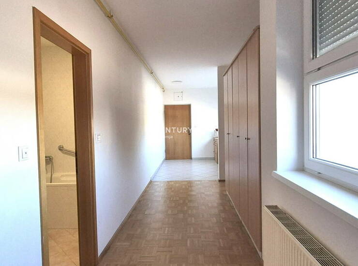 Na odlični lokaciji v Radvanju, tik pod Pohorjem, oddamo komfortno 4- sobno stanovanje s čudovitim razgledom, v 1. nadstropju večstanovanjskega objekta, zgrajenega v letu 2001. Objekt ima dvigalo in pripadajoče notranje parkirno mesto v podzemni garaži. 4- sobno stanovanje v skupni izmeri 114,7 m2 (od tega uporabne caa površine 101,7 m2) ima naslednjo razporeditev: Prostoren predprostor in hodnik Kopalnica Ločen WC Spalnica Osrednji prostor s kuhinjo, jedilnico in dnevno sobo, Spalnica 2 Otroška soba Balkon Shramba Tehnične lastnosti: prostore in sanitarno vodo ogreva lastna plinska peč ogrevala v stavbi so radiatorji, na katerih so nameščeni termostatski ventili okna so PVC, 2-slojna, senčenje z žaluzijami talne obloge: kombinacija keramike in parketa smiselna razporeditev prostorov Opremljana je kuhinja z gospodinjskimi aparati (indukcijska plošča, pečica, pomivalni stroj, napa, hladilnik in zmrzovalnik) in ostala notranja oprema razvidna iz fotodokumentacije razvidne iz oglasa. Ostalo si najemnik opremi po svojih željah in okusu. Kopalnica je opremljena s kopalniško opremo (brez pralnega stroja). V mesečni najem je vključeno pokrito parkirno mesta v garaži objekta. K mesečni najemnini so obračunavajo še mesečni tekoči stroški, ki so obračunani po dejanski porabi. Strošek rezervnega sklada je 27 EUR. Strošek upravnika je glede na število prijavljenih oseb. Plačilo varščine v višini 2 mesečnih najemnin. V stanovanju niso dovoljenje nobene domače živali, dolgoročni najem zgolj osebam z rednimi mesečnimi dohodki. Najemnik plača izvedbo primopredaje in sestavo primopredajnega zapisnika, prepis naročnin in pripravo gradiva v višini ene mesečne najemnine, to je 1.000 EUR + DDV. Pogodba se izvede v obliki notarskega zapisa na strošek lastnika. Stanovanje je možno prevzeti takoj. Opomba: Nakup stanovanja ni mogoč.
