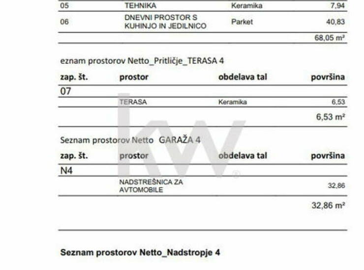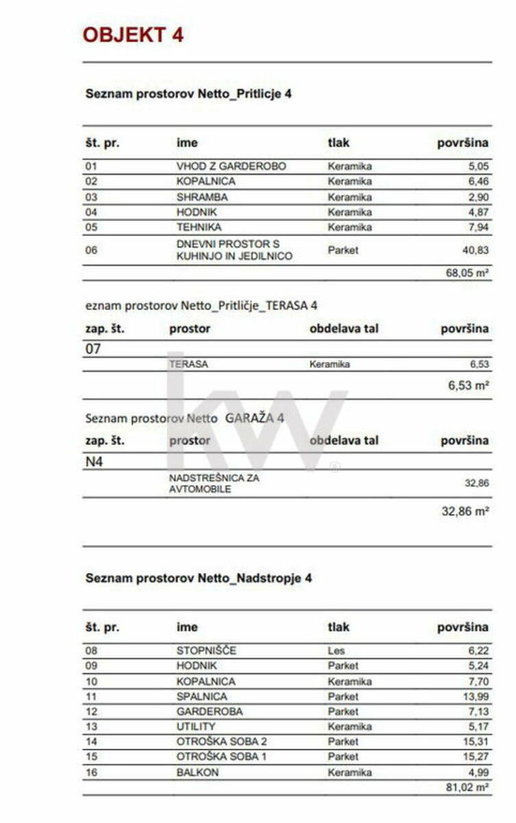 Nadstropje zajema: stopnišče 6,22m2, hodnik 5,24m2, kopalnica 7,70m2, spalnica 13,99m2, garderoba 7,13m2, utility 5,17m2, otroška soba ena 15,31m2, otroška soba dva 15,27m2, balkon 4,99m2, terasa v velikosti 6,53m2, SKUPAJ POVRŠINE: 155,60m2. TRATE OZIROMA ZELENICE JE V VELIKOSTI 80m2.