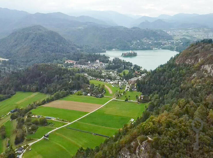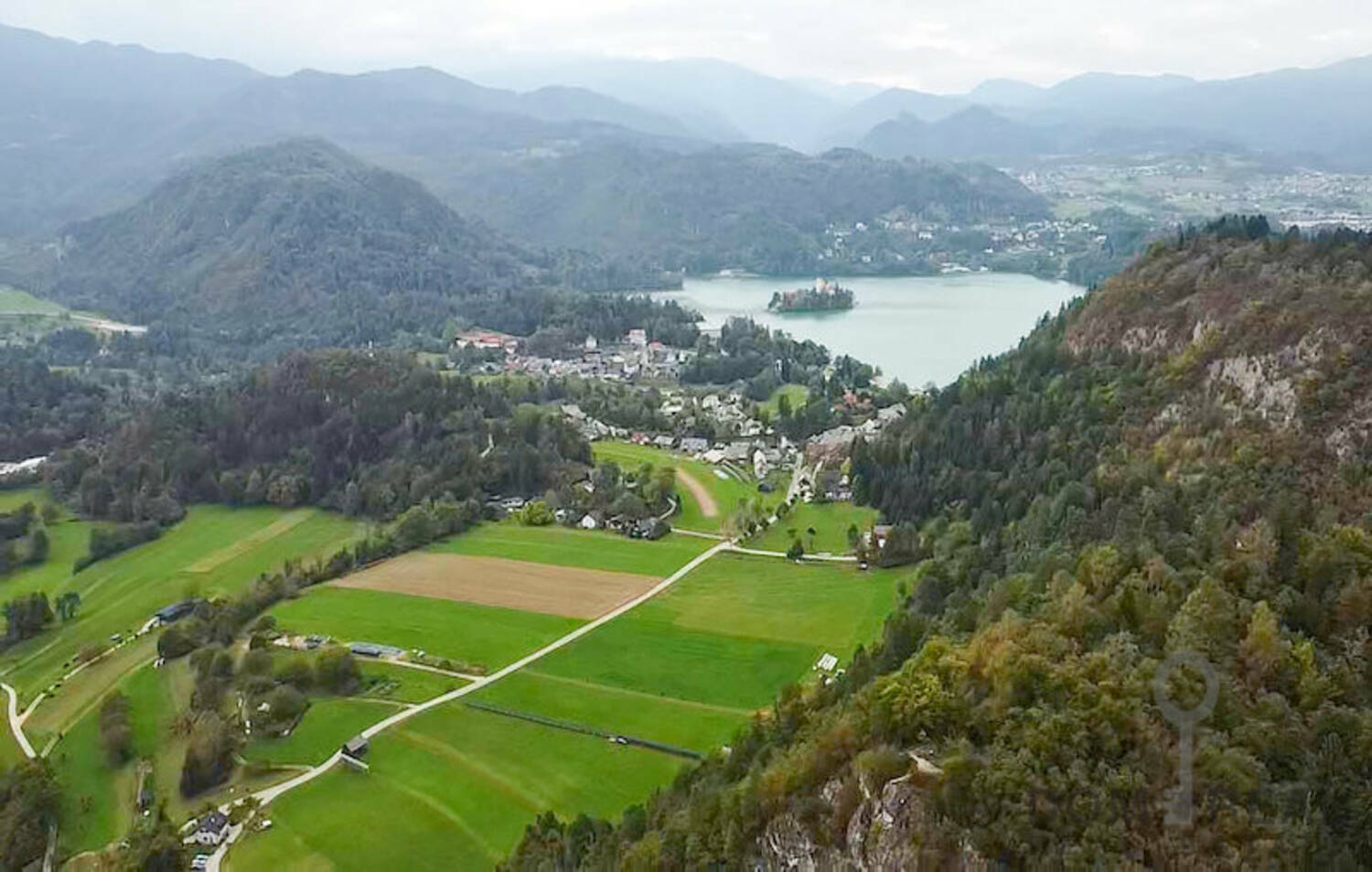 Z veseljem vam predstavljamo izjemno posestvo ob Blejskem jezeru – resnično edinstveno posestvo, ki obsega 11.994 m² in ponuja dih jemajoče panoramske razglede na bujno okolico in veličastne gore.