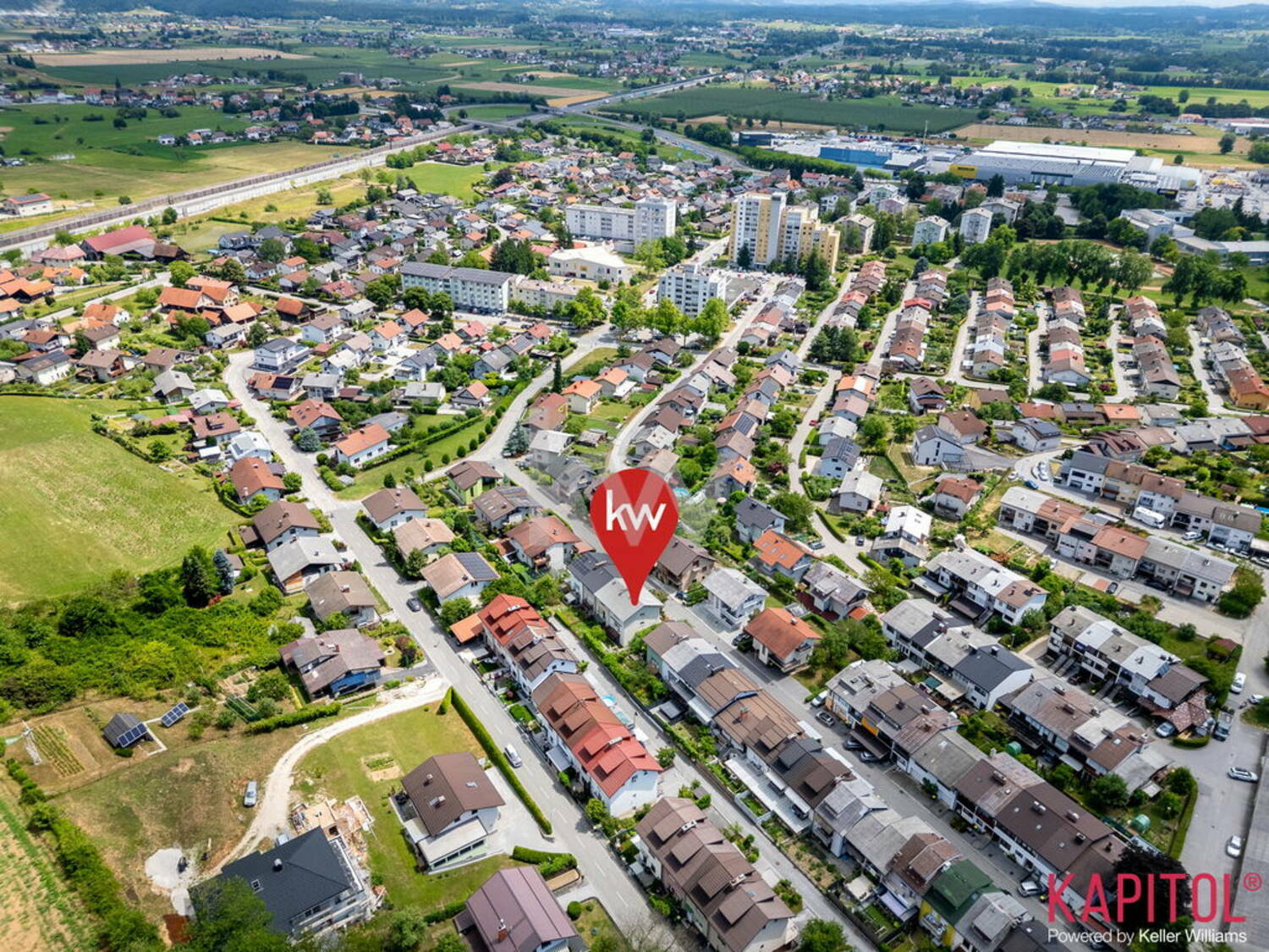 Hiša se nahaja na iskani lokaciji v bližini vse potrebne infrastrukture (osnovna šola, vrtec, trgovina, lekarna, avtocesta, itd.), hkrati pa je oddaljena zgolj nekaj minut vožnje do centra mesta.