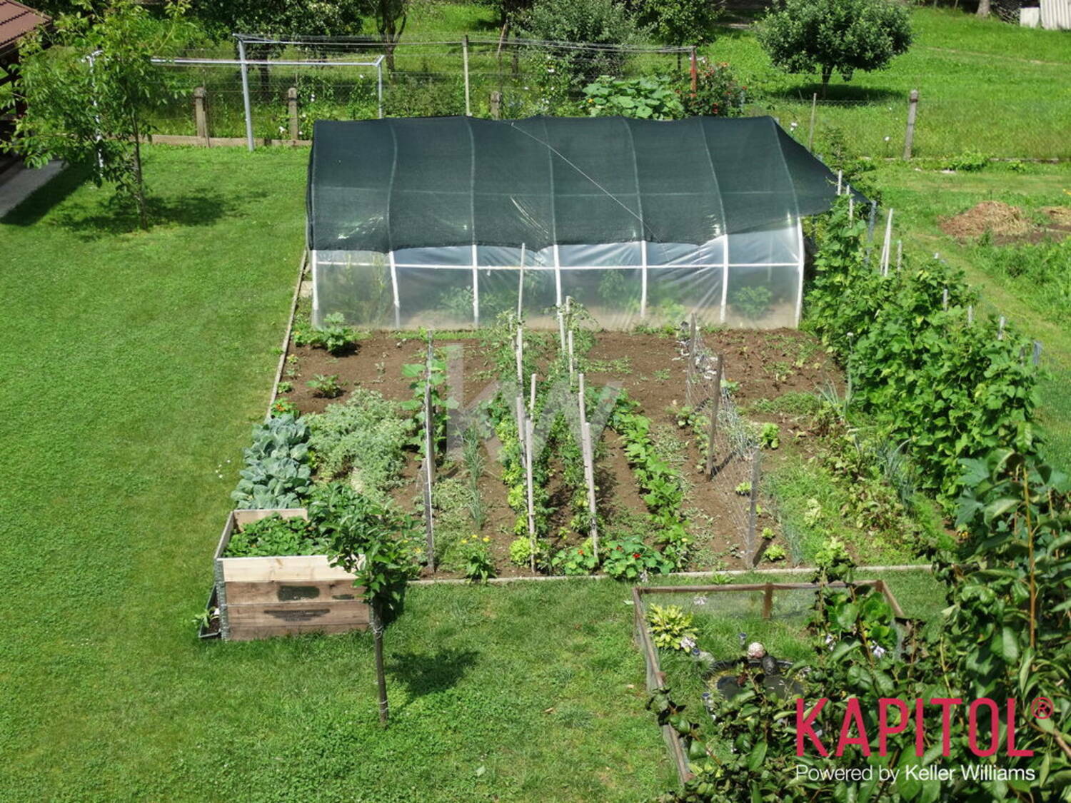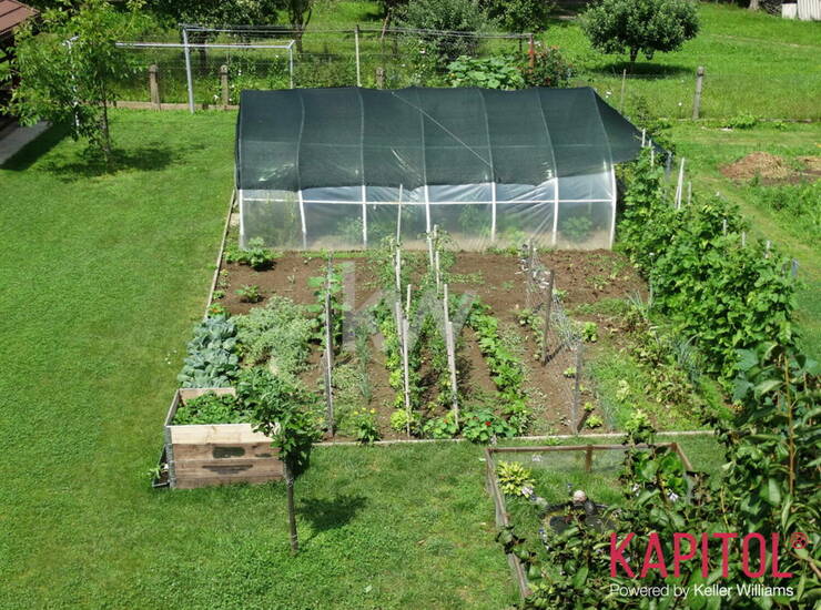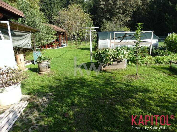 Prostorna zelenica je urejena in vam ponuja brezskrbno uživanje na svežem zraku z možnostjo vrtičkanja (ograjen z betonskimi robniki tlorisne površine 70m2 in postavljenim pokritim rastlinjakom). Na travniku je zasajeno raznovrstno sadno drevje (jabolka, hruške, češnje, breskve, kaki, kivi, robide ter maline). Na severni strani parcele je varovani gozd, ki služi kot bariera hrupu z avtoceste, oddaljene od parcele cca. 400 m.