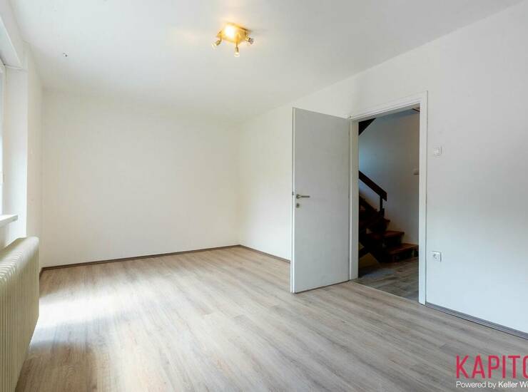 Pritlična etaža je povezana z neposrednim izhodom na vrt na zadnji strani hiše, kjer boste lahko uživali na prostem v toplejših dneh. V pritličju se nahajata tudi manjša garaža in kurilnica.