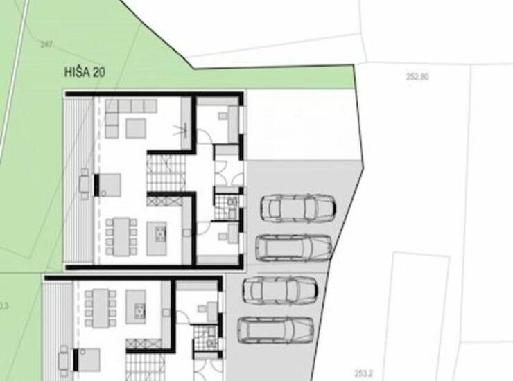 V kletni etaži, ki bo delno vkopana, boste našli tehnični prostor, ki omogoča priročno shranjevanje in vzdrževanje. Za tiste, ki radi preživljate čas na prostem in uživate v dobri hrani, je tu letna kuhinja, idealna za družinska druženja ali večerje s prijatelji. Prijetno presenečenje je tudi prostor za rekreacijo ali delovna soba, ki se lahko preoblikuje v dodatno spalnico za goste ali družinske člane. Poleg tega klet vključuje še prostor za savno, kjer se boste lahko sproščali po napornem dnevu, ter izhod na teraso z zelenico, kjer boste uživali v jutranji kavi ali popoldanskem soncu.