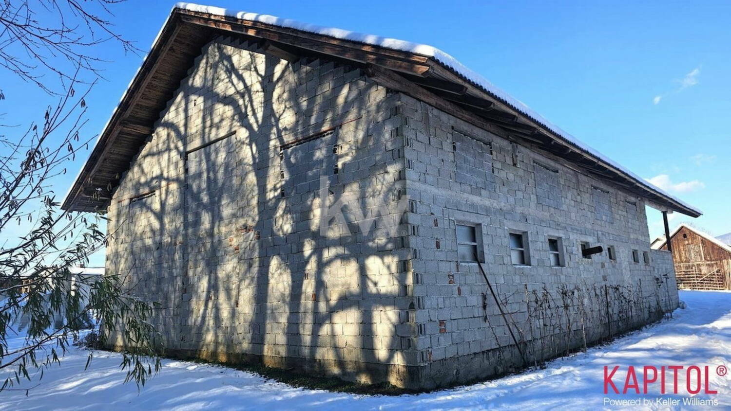 Stavba je meri 17x12m, P+1, pritlična etaža ima višino cca. 3m. Objekt je priključen na elektriko.