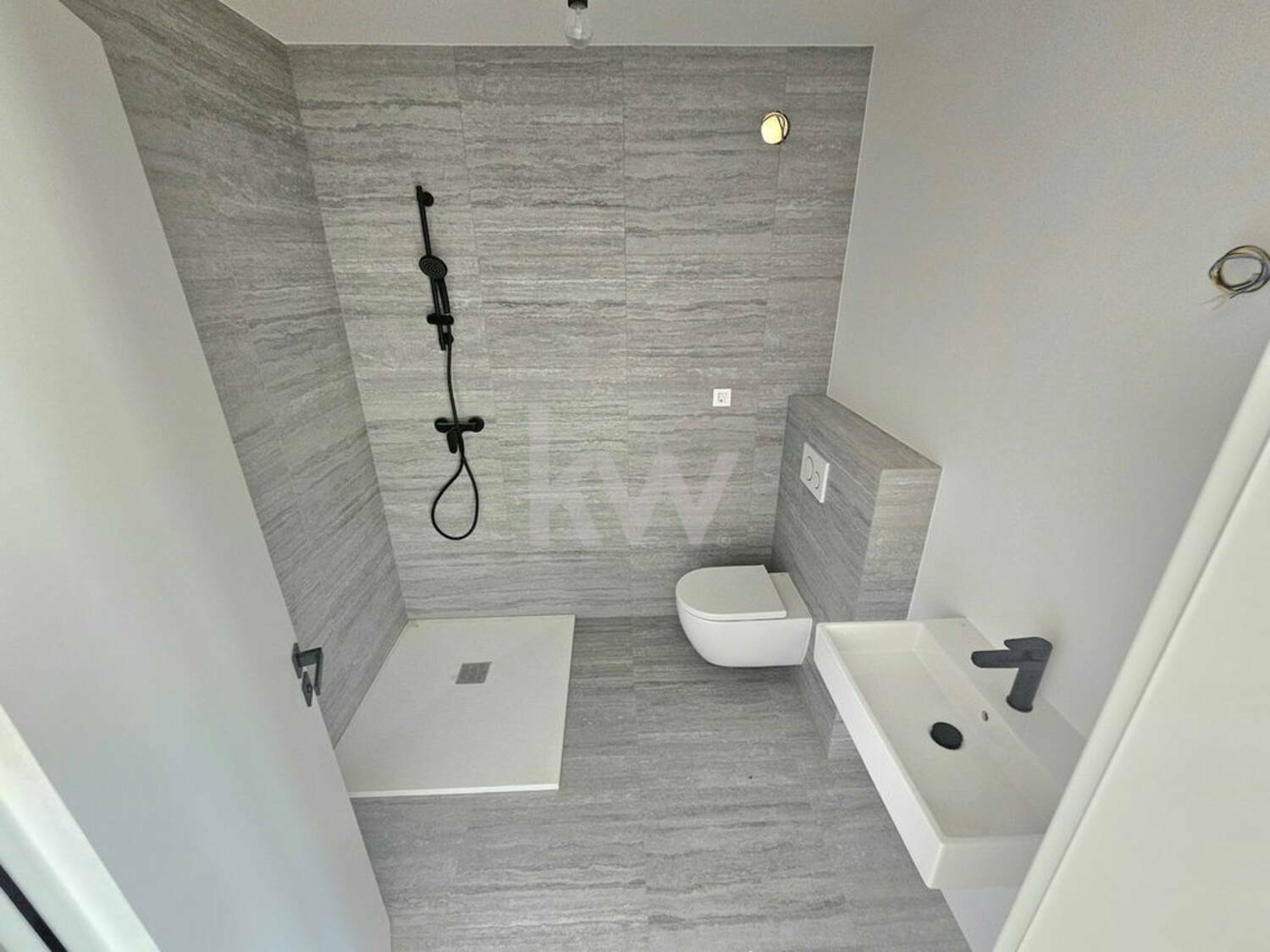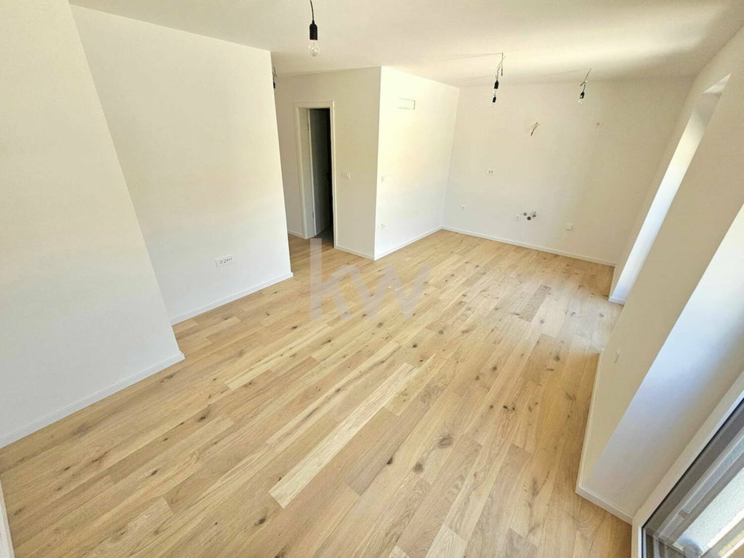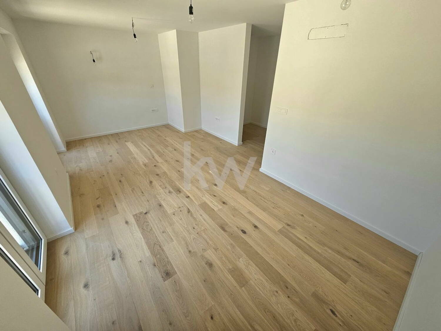 Finalni tlaki prvovrsten finalno lakiran hrastov parket v videzu surovega lesa, talna in stenska keramika v videzu travertino, finalni oplesk sten in stropov.