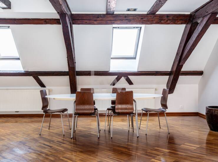 Odlikujejo ga izjemna razporeditev prostorov, vrhunska adaptacija ter kakovostni materiali, medtem ko visoki stropi in nadstandardne površine posameznih prostorov ustvarjajo prefinjeno meščansko toplino in pridih prestiža. Takšno stanovanje se na trgu pojavi le izjemoma, zato predstavlja edinstveno priložnost za najzahtevnejše kupce.