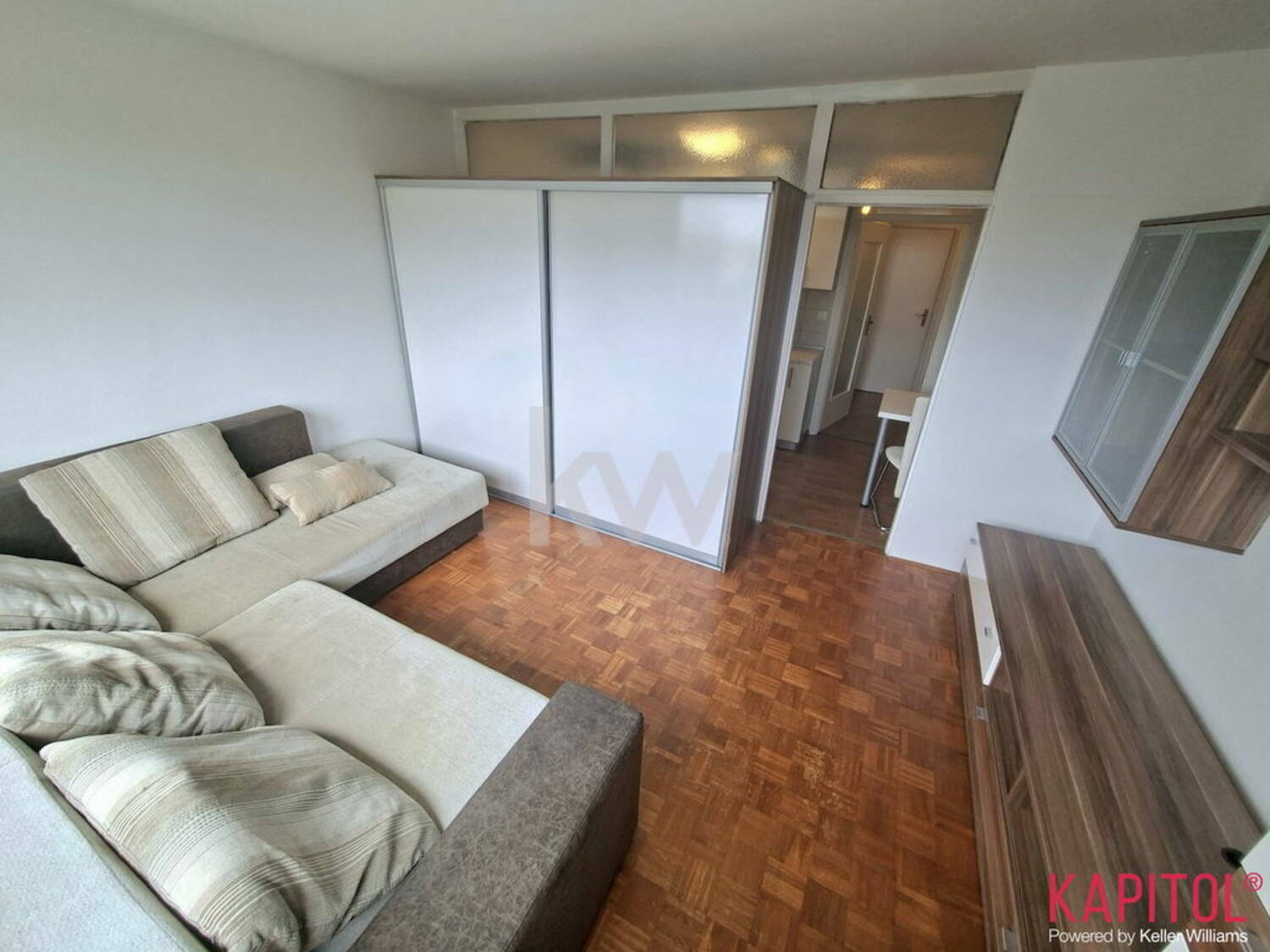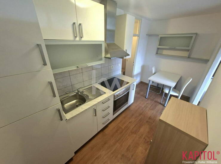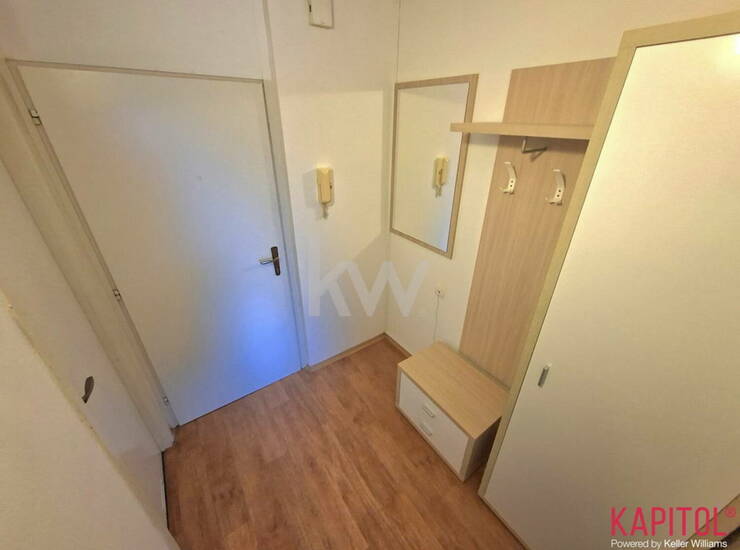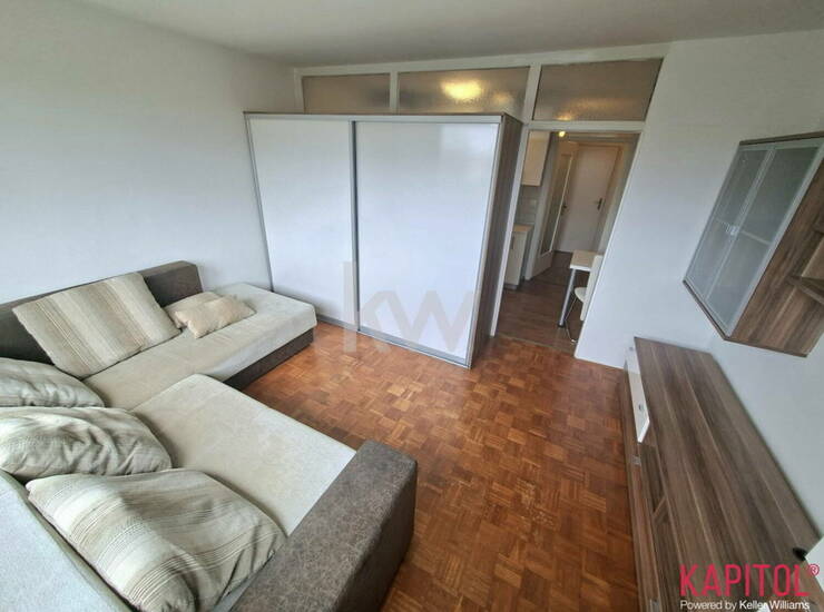 V nakup vam lahko ponudimo manjše vendar zelo funkcionalno stanovanje, ki je s pregradno steno preurejeno v 1-sobni razpored.