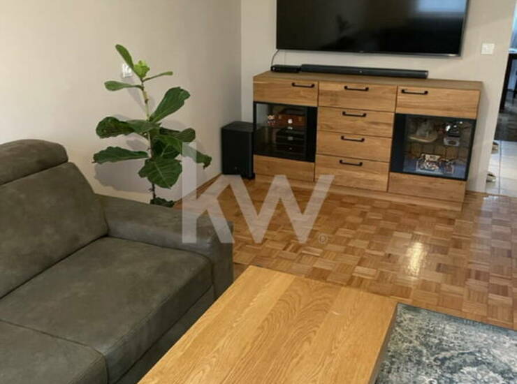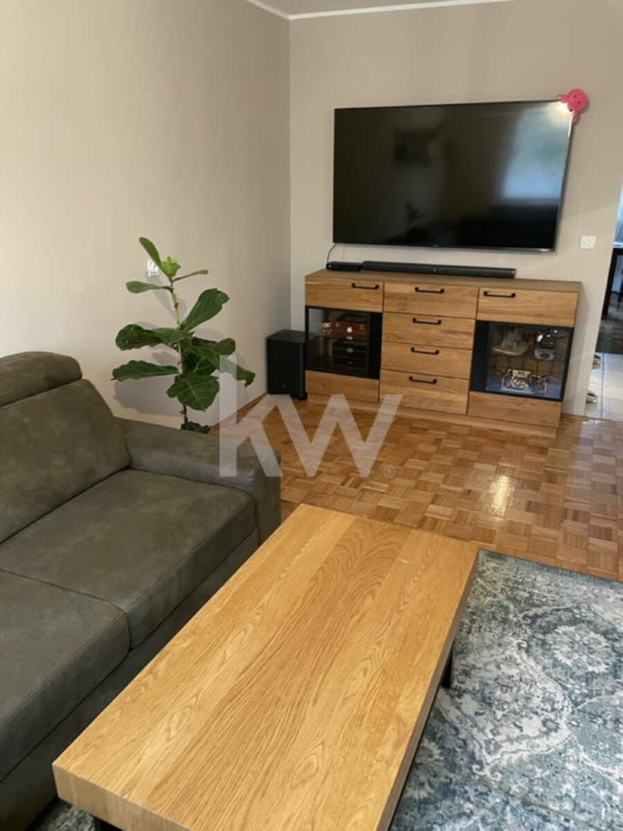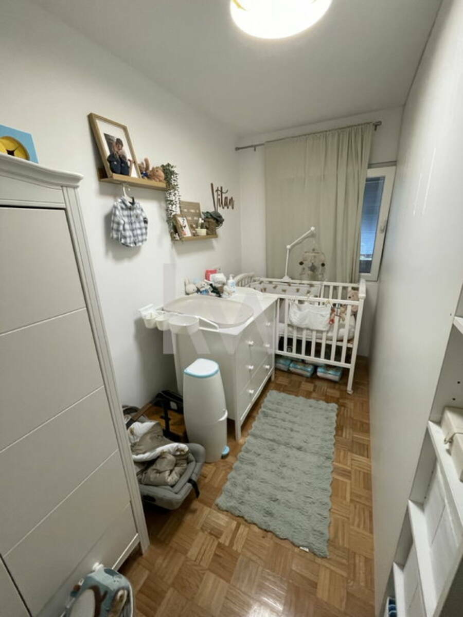Predsoba, Spalnica, Kuhinja z jedilnico, kopalnica, dnevna soba, otroška soba in zastekljen balkon. Stanovanju pripada tudi prostorna klet.