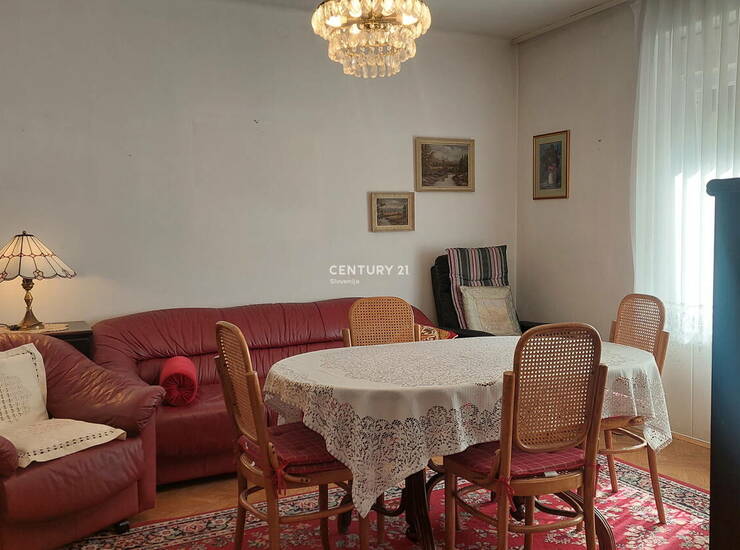 LOKACIJA Stanovanje se nahaja na zelo iskani lokaciji v centru Celja, na Malgajevi ulici, nasproti 1. gimnazije Celje in v neposredni bližini Savinjskega nabrežja ter mestnega središča v dobro vzdrževanem stanovanjskem bloku s skupaj 8 enotami. Hodniki so prepleskani, elektro inštalacije obnovljene. Bližina centra: nasproti 1. gimnazije Celje, le nekaj minut hoje do starega mestnega jedra, Savinjskega nabrežja, tržnice, bolnišnice ter vseh pomembnih kulturnih in uradnih institucij v mestu. Rekreacija: bližina celjskih gričev, mestnega parka, Savinjskega nabrežja, sprehajalnih poti, stadiona, ... Dostop do storitev: trgovine, bolnišnica, zdravstveni dom, lekarna, šole, vrtec, restavracije, avtobusna postajališča Izobraževalne ustanove: v bližini vrtca, osnovne šole, gimnazije LASTNOSTI NEPREMIČNINE: Velikost: 89,9 m2 bruto tlorisne površine, 70,7 m2 neto tlorisne površine, stanovanju pripada še velika klet in skupna kolesarnica Leto izgradnje: 1954 (potrebno osvežitve (osnovna pleskarska dela, osvežitev dobro ohranjenega parketa - ribja kost), sicer zelo lepo vzdrževano stanovanje, leta 2010 so bila zamenjana okna - PVC termopan, streha je bila obnovljena leta 1990, Nadstropje: visoko pritličje / 3 Število sob: 3 (z možnostjo individualne razporeditve in namena) Energijski razred: v izdelavi je energetska izkaznica Ogrevanje: etažna plinska peč Pogled: proti okoliškemu gričevju in zelenim površinam I. gimnazije Celje Stavba: urejen stanovanjski blok Parkiranje: dve parkirišči za zapornico ob bloku RAZPOREDITEV PROSTOROV Vhod v stanovanje: v stanovanje vstopimo na ločen hodnik z garderobo, ki nas na desni strani pelje do ločene kopalnice in stranišča in nato naprej do kuhinje, na levo do jedilnice z dnevno sobo in prve spalnice ter naravnost do druge spalnice/delovne sobe/otroške sobe z izhodom na balkon Glavna jedilnica z dnevno sobo: nasproti ločene kuhinje se nahaja jedilnica z dnevni