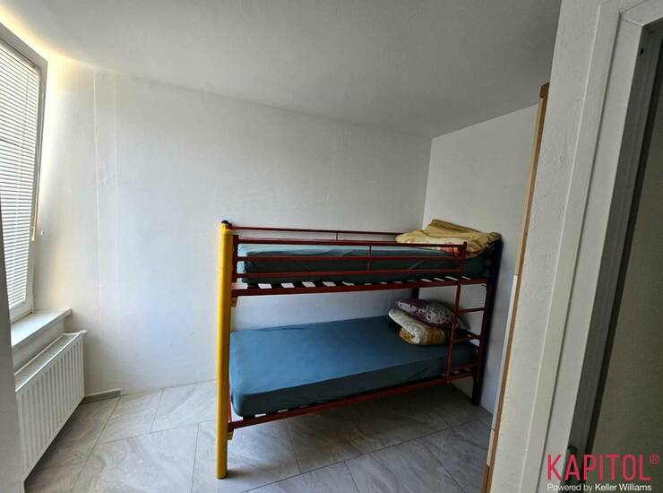 Stanovanje meri 51m2 in obsega bivalni prostor s kuhinjo, dve manjši sobi, kopalnico z WC + 41m2 velik kletni prostor.
