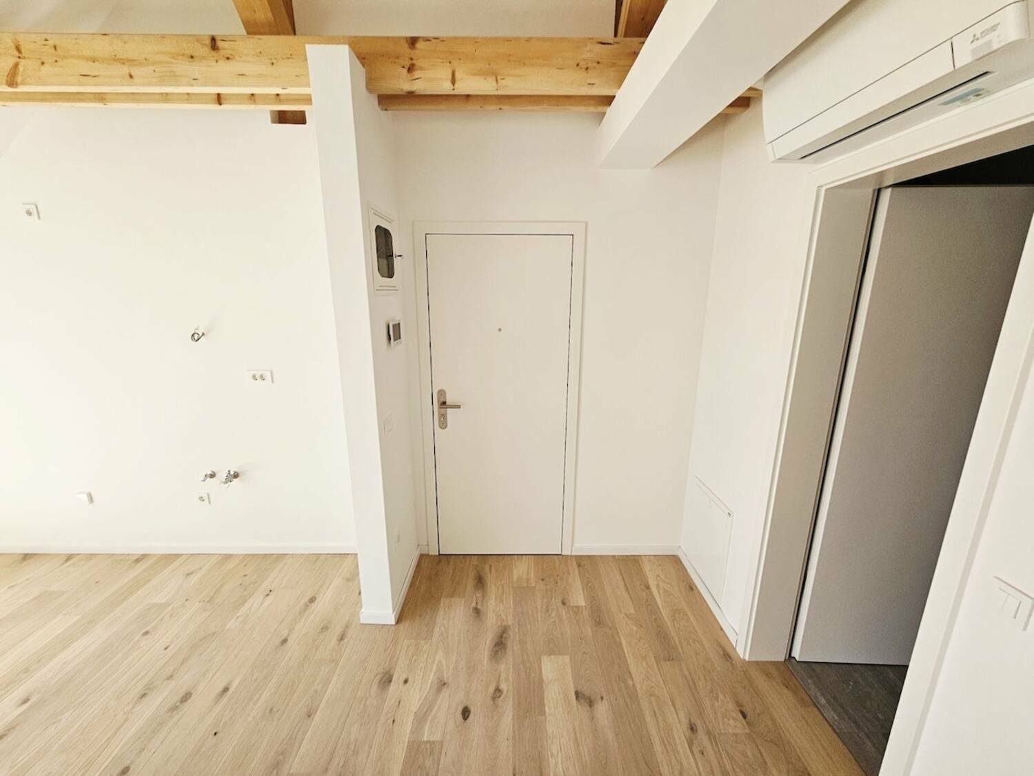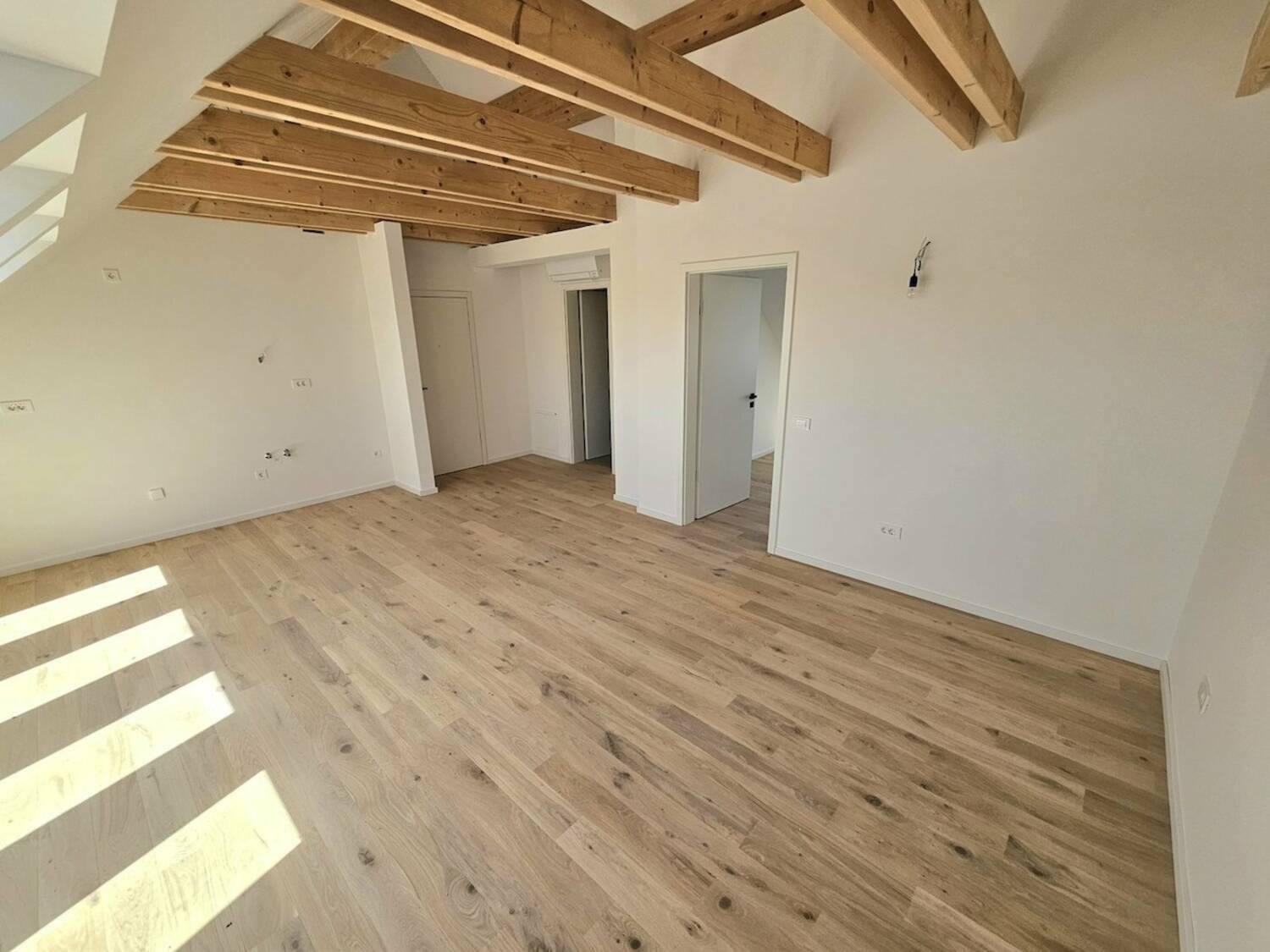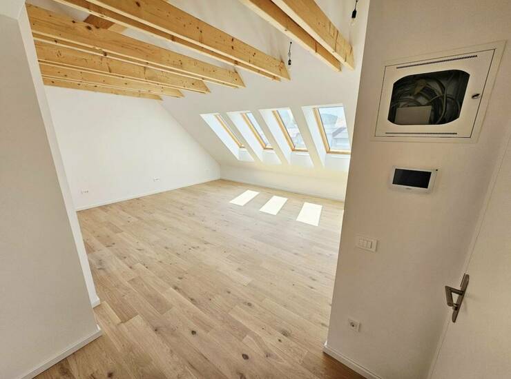 Finalni tlaki prvovrsten finalno lakiran hrastov parket v videzu surovega lesa, talna in stenska keramika v videzu travertino, finalni oplesk sten in stropov.