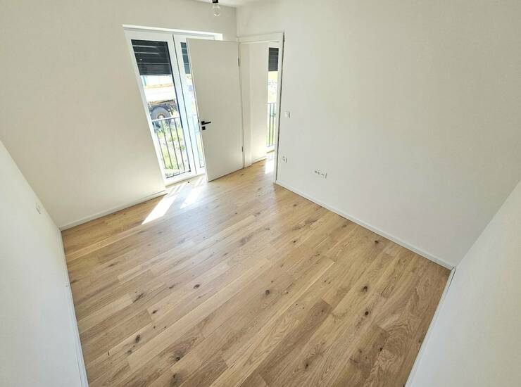 Finalni tlaki prvovrsten finalno lakiran hrastov parket v videzu surovega lesa, talna in stenska keramika v videzu travertino, finalni oplesk sten in stropov.