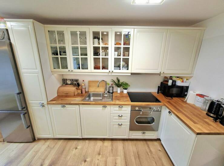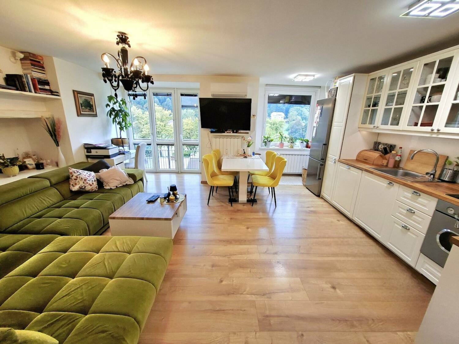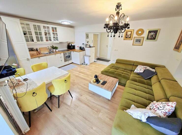 Odprt dnevni prostor združen s kuhinjo in jedilnico zagotavlja prostornost, južna lega s pogledom na savinjsko nabrežje in reko Savinjo pa obilo dnevne svetlobe.