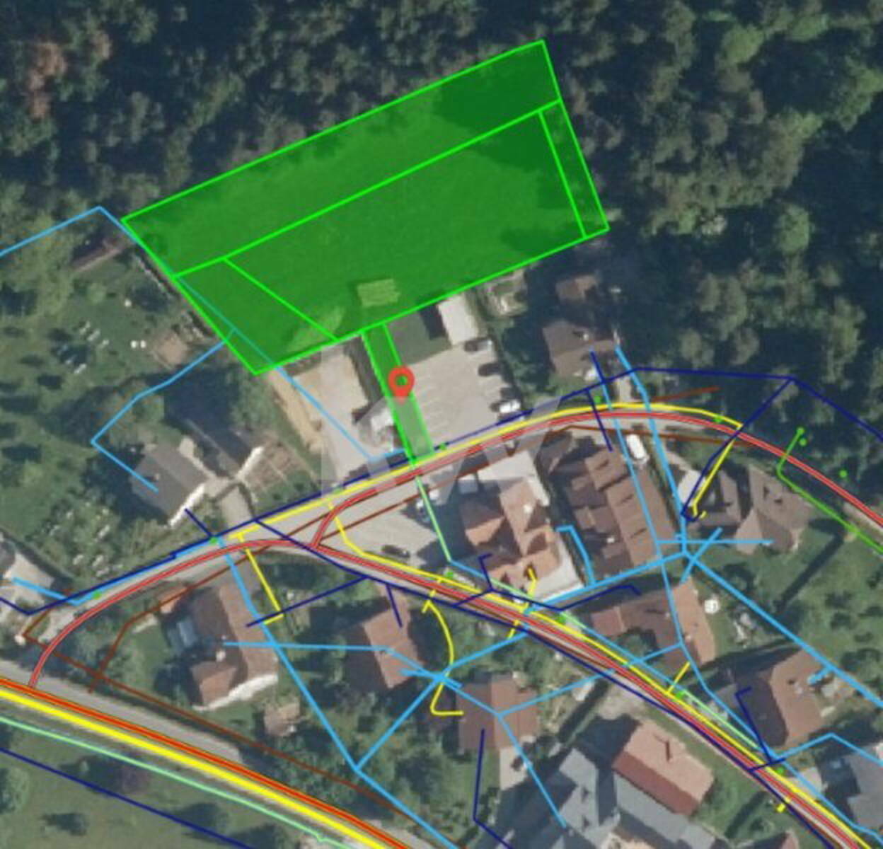 Po veljavnem prostorskem aktu - zazidalnem načrtu je na zemljišču predvidena gradnja 6 stanovanjskih hiš dimenzije 9x12 in etažnosti K + P + IP.