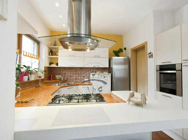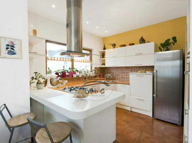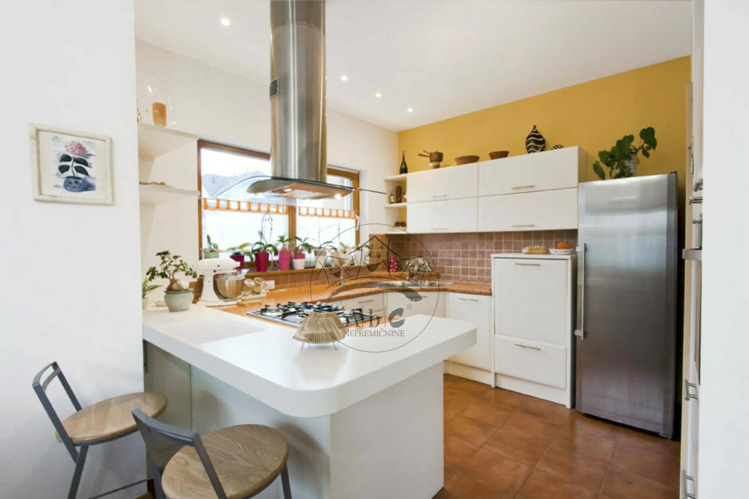 - Prostorna kuhinja z jedilnim prostorom, povezana v dnevni prostor z izhodom na teraso in vrt