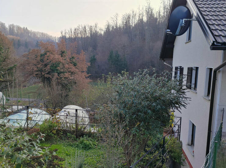 Za hišo se nahaja čudovit vrt s sadnimi drevesi, ki se nato nadaljuje v gozd.
