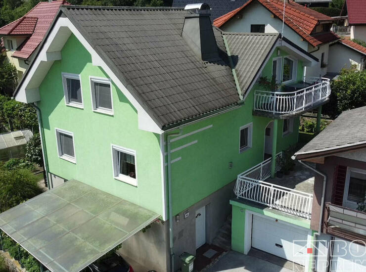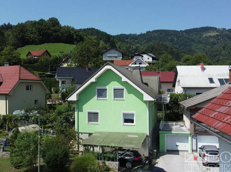 Na mirni, sončni in iskani lokaciji s prelepim razgledom na grad in center Dravograda prodamo urejeno in dobro vzdrževano stanovanjsko hišo z garažo. Na 345 m2 veliki parceli se poleg hiše in garaže nahaja še terasi, okrasno grmičevje in drevje ter urejeno parkirišče za več osebnih vozil.