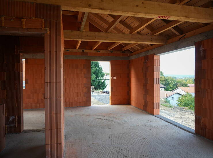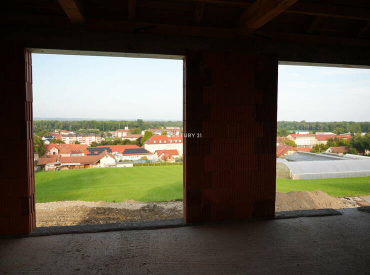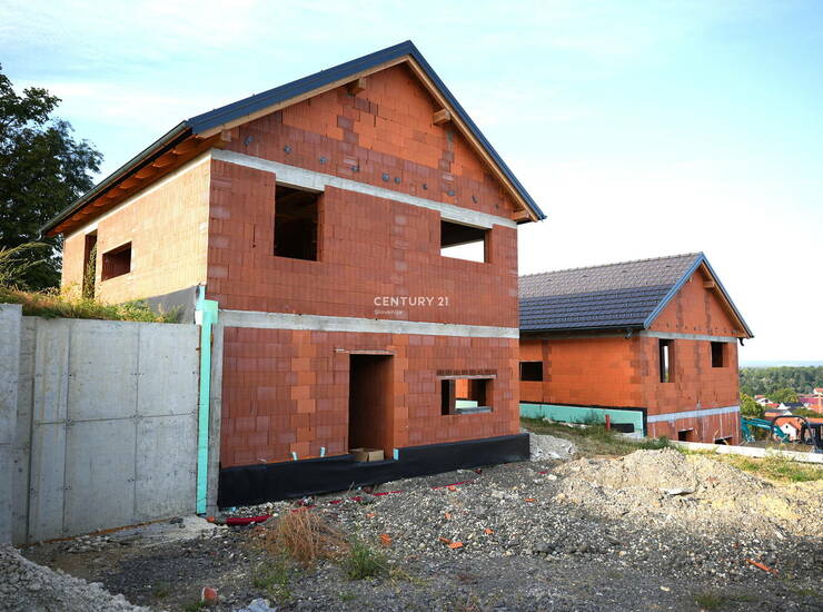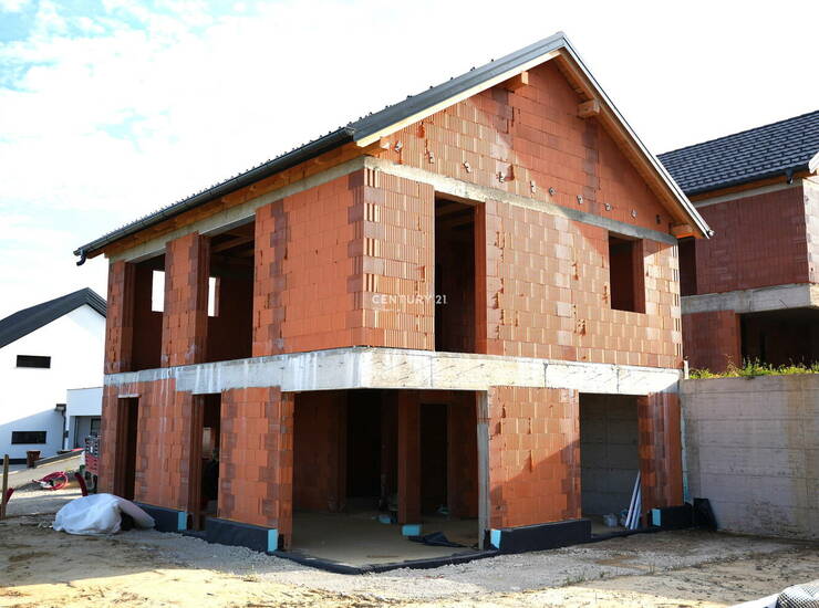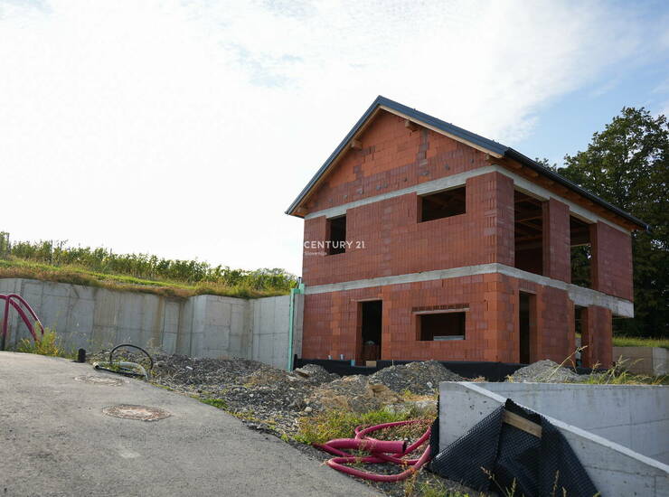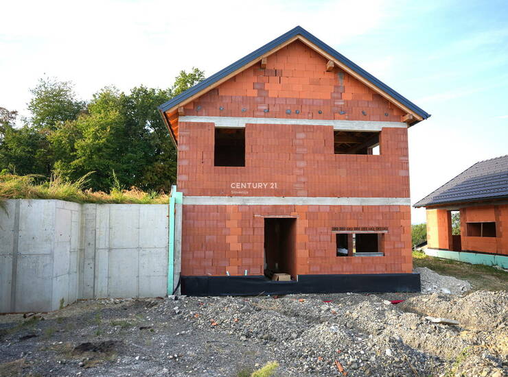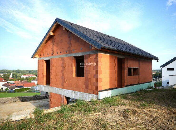 HIŠA GRAJSKI VRTOVI - GORNJA RADGONA – bivanje nad mestom. Zastopamo pri prodaji 2 samostojnih hiš z lepim razgledom na Gornjo Radgono, etažnosti P+1, skupne kvadrature 145,93 m2 ter z možnostjo dokupa garaže za 2 avtomobila v izmeri 33,82 m2, ki se razprostira na parceli v velikosti 460 m2. Cena velja za izvedbo, kot je razvidno na fotografijah in vključuje DDV. Prevzem hiše, do te faze kot je prikazan na fotografijah je možen takoj. Doplačilo za garažo je možno po predhodni ponudbi investitorja. Prostori v pritličju so skupni velikosti caa 64,87 m2 in so namenjeni dnevnemu preživljanju skupnega časa, pokrita terasa v izmeri 18,90m2 pa odpira pogled v okolico in lepo povezuje notranjost z zunanjim delom. Prostori v nadstopju so v izmeri 62,16 m2 in vključujejo spalnico, otroški sobi in kopalnico. Podrobnejši tloris in razporeditev prostorov je razviden med fotografijami in v prilogi oglasa. Hiša je izvedena do III. gradbene faze, kar pomeni, da si lahko v lastni režiji personalizirate življenje v domu, točno takšnem, kot si ga želite. V oglasu je priložena zgolj vizualizacija potencialne zunanje ureditve, ki ni vključena v oglaševano ceno. Tehnična izvedba: - izvedba do III. gradbene faze, ki zajema: konstrukcijska gradbena dela vseh etaž in podstrešja, izvedbo strešne konstrukcije, izvedbo krovskih del. - temeljenje objektov bo izvedeno kot AB temeljna plošča. Od ploščo je izvedena toplotna izolacija. - celotna nosilna konstrukcija, zidovi so opečni oz. delno armiranobetonski. - nekateri predelni nenosilni zidovi so zidani z zidnimi bloki iz plinobetona. - streha je izveda kot simetrična dvokapnica, naklona 30. Oglaševana cena vsebuje davek. Komunalna oskrba: Dovozna cesta bo ob zaključku izgradnje asfaltirana in bo prenesena v javno dobro. Lokacija: Odlična in lahko dostopa lokacija. Naselje premore v bližini vso potrebno infrastrukturo, ki zagotavlja kvalitetno bivanje. V bliži