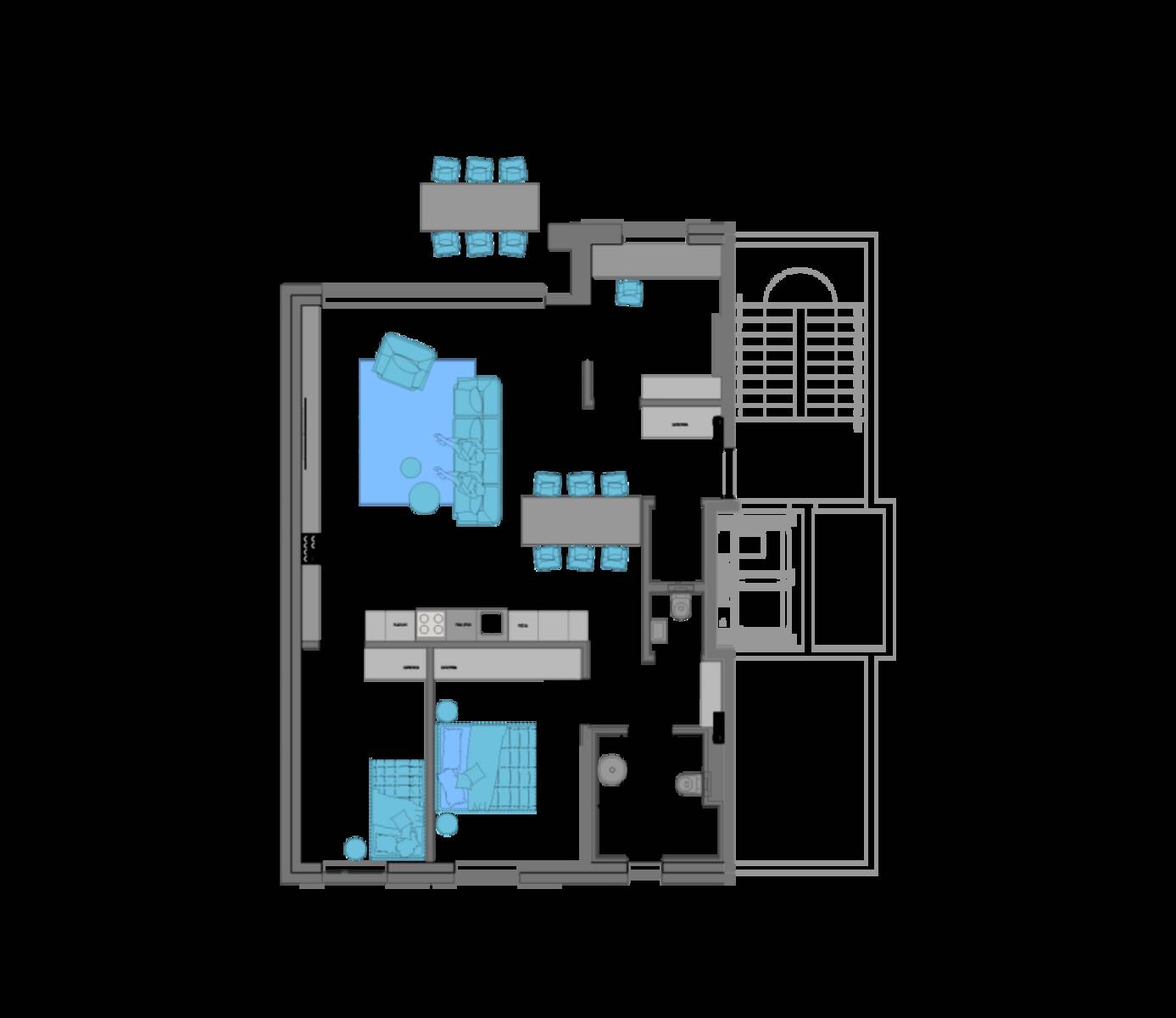 Stanovanje se nahaja v pritličju, kar omogoča neposreden dostop do lastniškega atrija, zagotavlja popoln mir, intimnost bivanja in idealno povezavo notranjih in zunanjih prostorov.