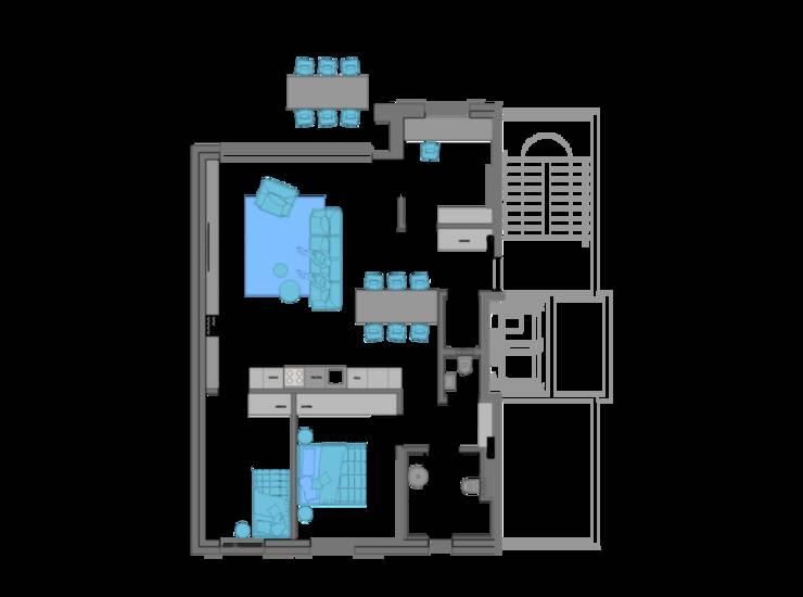 Stanovanje B09E03 ima skupno 89,6 m² neto bivalne površine, premišljeno in funkcionalno razporejeno: