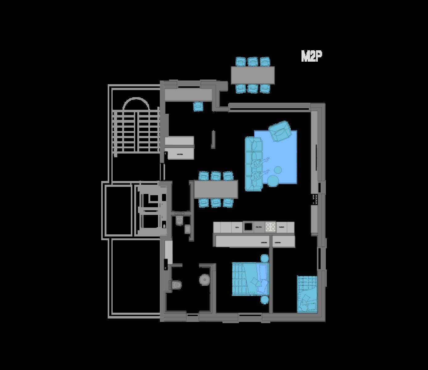 Stanovanje obsega 89,6 m² skupne neto bivalne površine in je zasnovano funkcionalno ter sodobno: