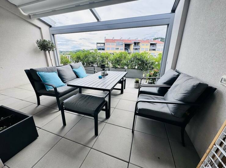 Stanovanje se nahaja v 2. nadstropju sodobne in urejene stavbe z dvigalom. Razporeditev prostorov je funkcionalna in odprta – dnevna soba, kuhinja in jedilnica tvorijo prostoren, svetel osrednji bivalni del, ki vodi na veliko teraso s pergolo, kjer lahko v miru uživate v čudovitem razgledu.