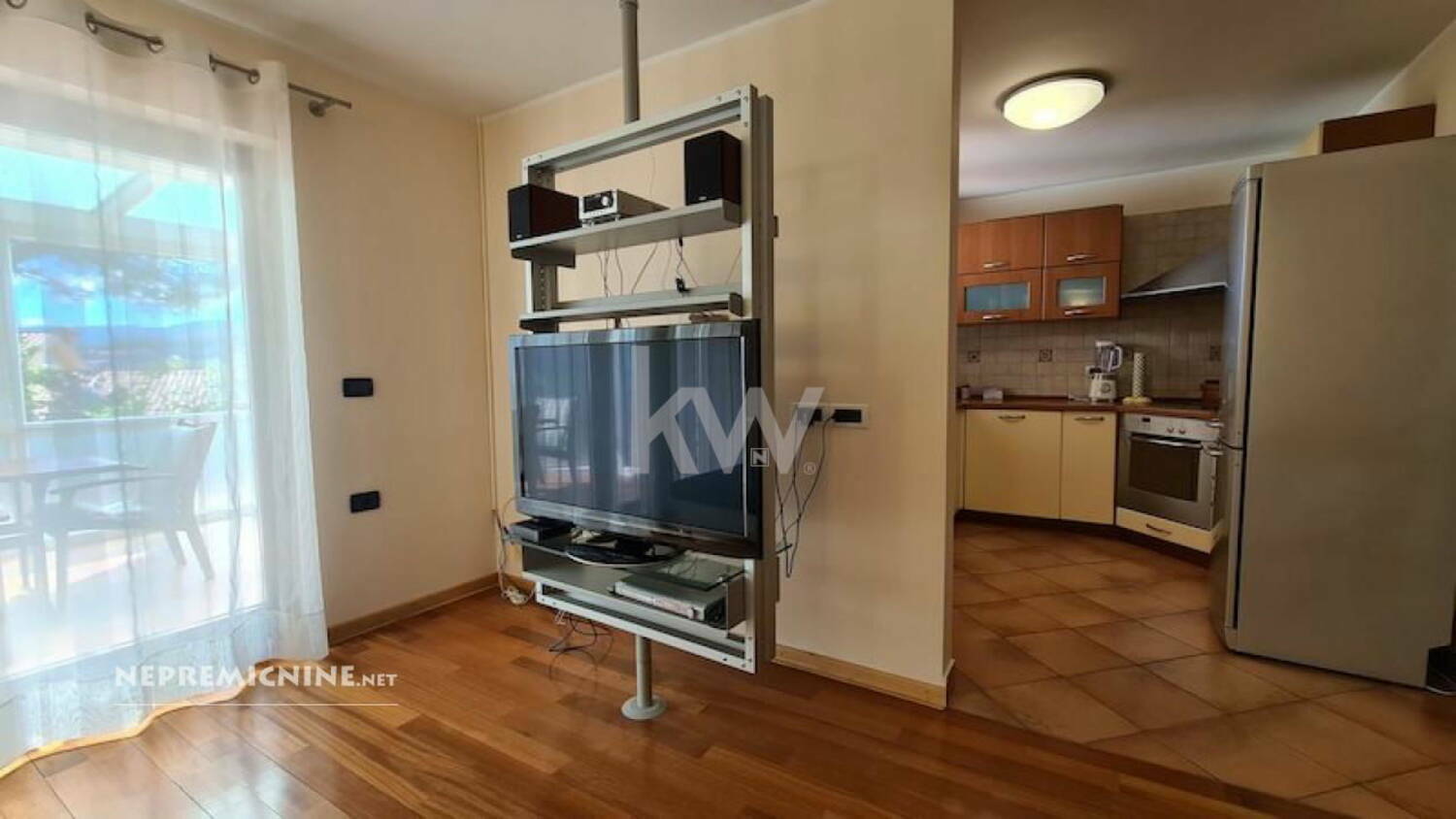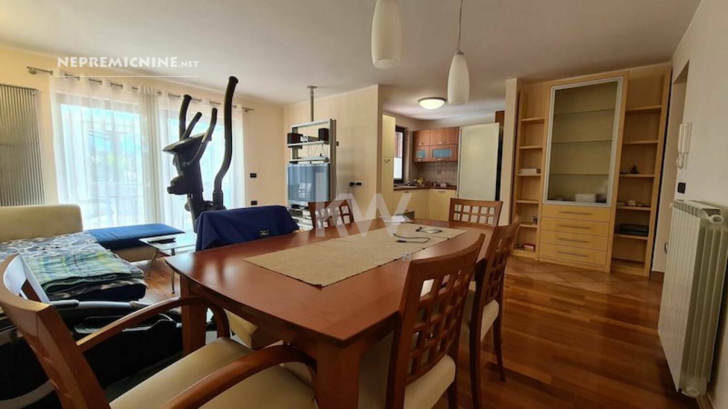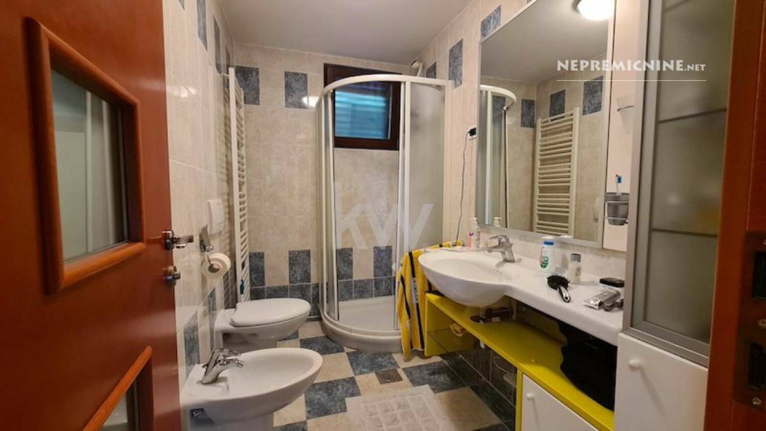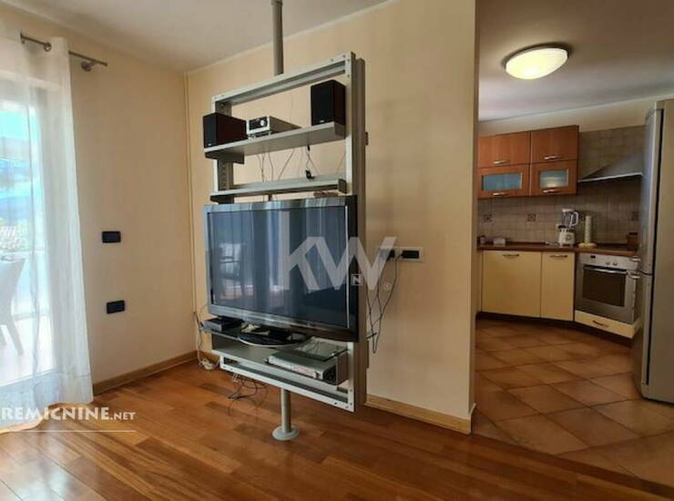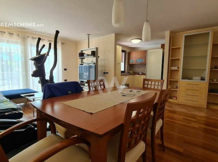 predstavlja na novo prenovljeno trosobno stanovanje: kuhinja z jedilnico, wc, kopalnica, hodnik, predprostor, dve spalna soba, dnevna soba in zastekljen zunanji prostor ( pvc konstrukcija, ki služi kot dodatna jedilnica oz. družabni prostor) iz katere je prehod na zunanje dvorišče. Kurilnica je umeščena pod stopnicami.