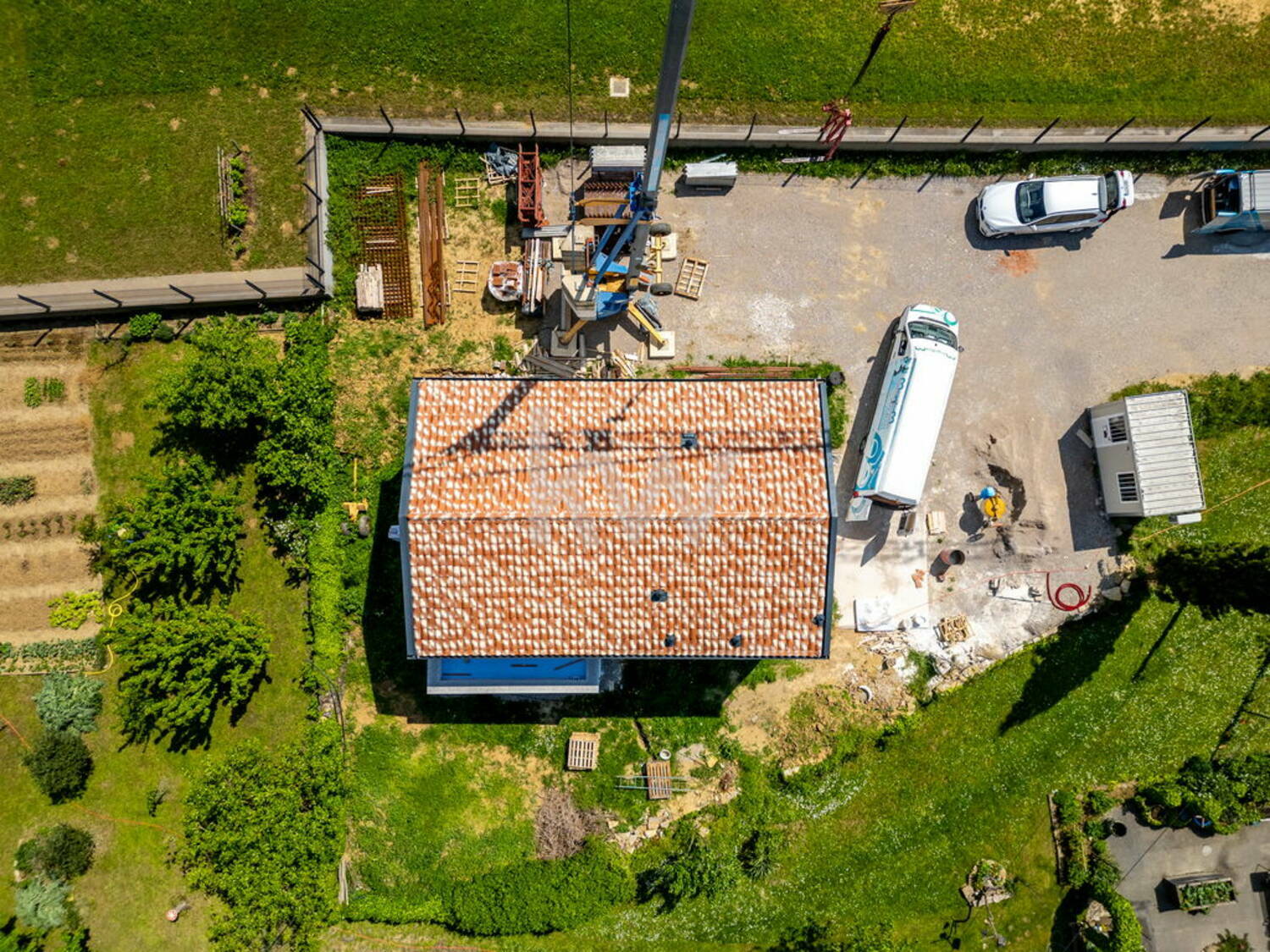 Gretje je urejeno s toplotno črpalko in talnim ogrevanjem. Vgrajene sta tudi dve klimi. Konstrukcija je opečnata z lesenim ostrešjem in streha je dvokapnica pokrita s korci ( 15 cm izolacije s stiroporom in estrih). Fasada je toplotno izolirana z 20 cm stiroporom. Čistilna naprava je namenjena za 6 ljudi. Vgrajeno je pvc AJM stavbno pohištvo ( 6 komorna okna-zunanja so antracit barve in notranja so bele barve). Okna imajo tudi komarnike in el. rolete.
